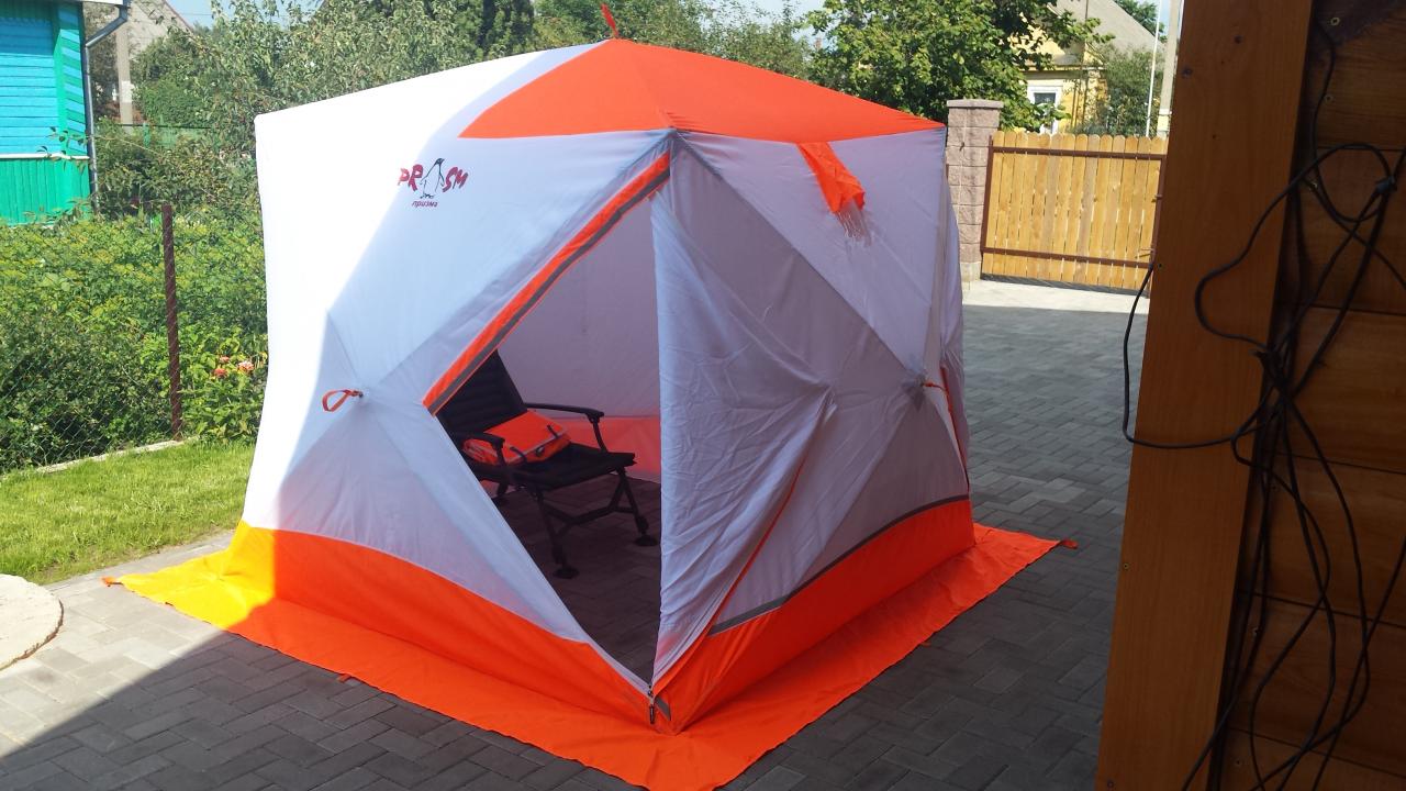 Купил палатку "Пингвин призма двухслойная".Первые ощущение от палатки это комфорт и объём.Понравилась полочка в палатку, крепится к механизму палатки