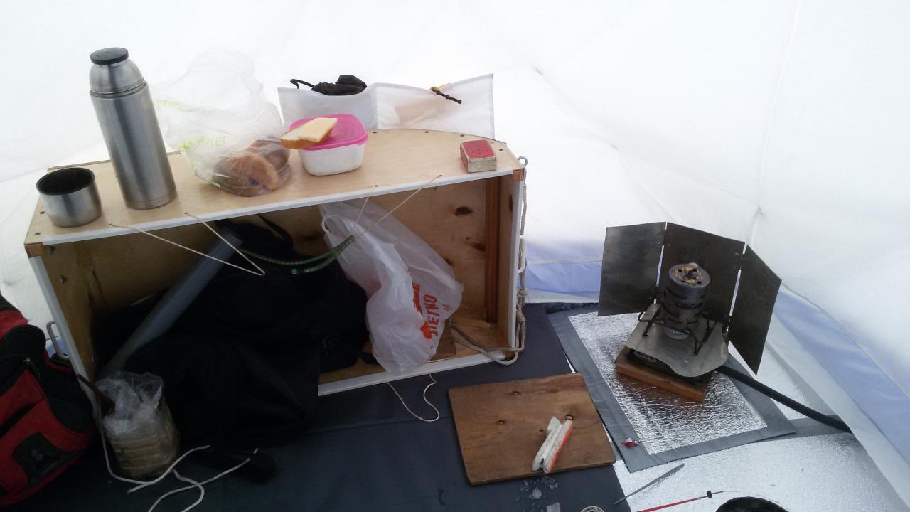 Палатка послужила достойным укрытием в течении двух ночевок с морозом в ночи -18С , днём поменьше.