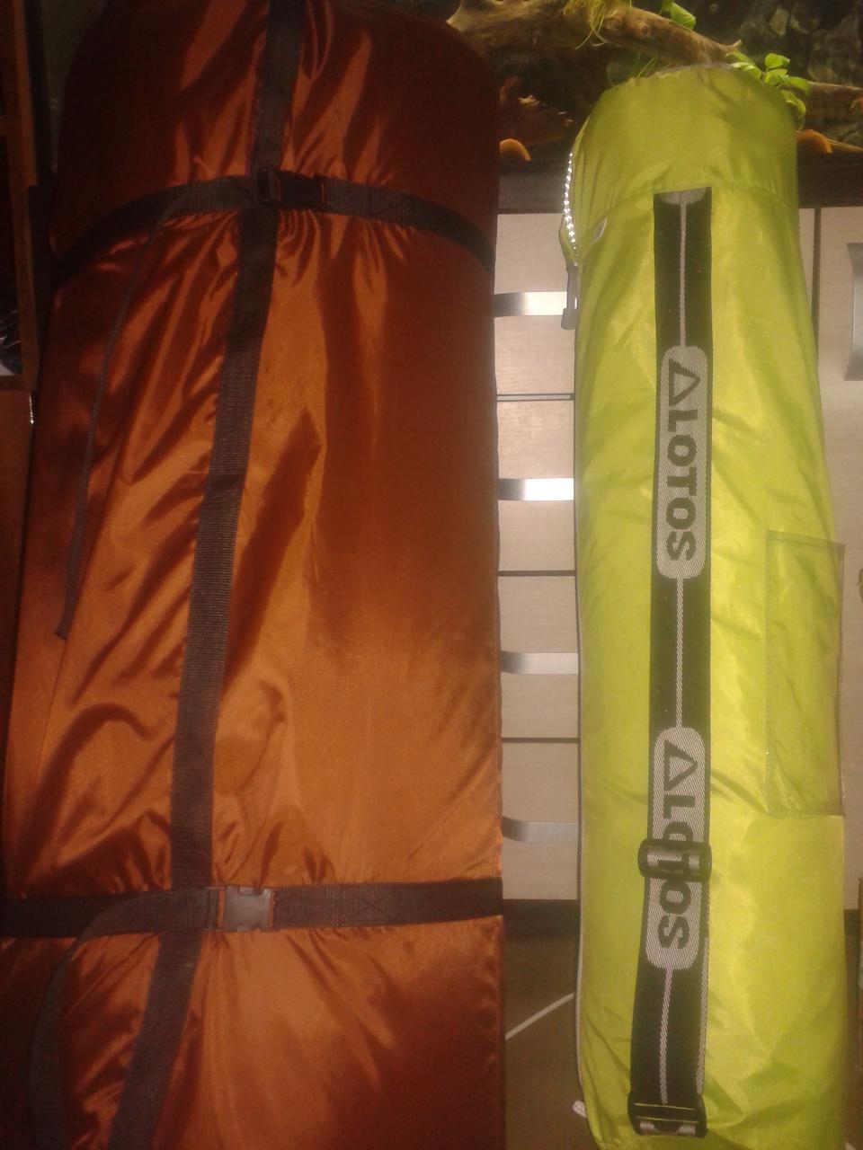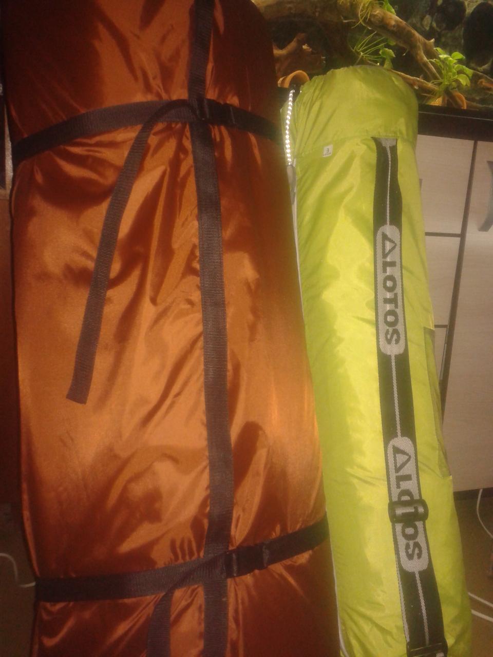 Мне он не нравится. Во-первых он тонкий. Там излома лист толщиной 5мм. Ну и чехол из Оксфорда. Сверху оранжевый снизу черный. К палатке крепится клевантами к каркасу.