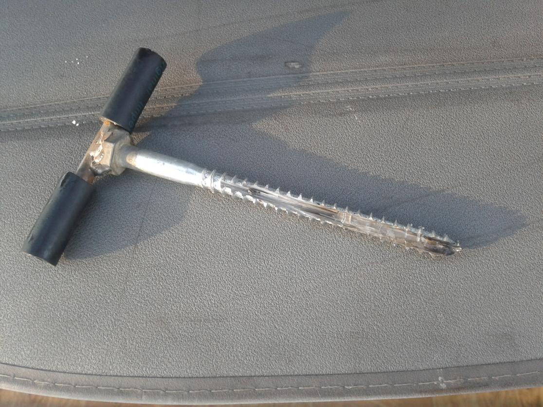 только что испытал сделанные в том году ввёртыши и доработанные вчера. Строительные "глухари" диаметр 10мм, длинна 15см, приваренный прут и на него кусочки шланга одеты. Раньше саморез очень плохо врезался в лёд, откалывались куски льда. Доработал прорезанием продольной канавки болгаркой, можно наждаком. В лёд идёт как в масло и держится во льду крепко, не расшатываются (бил пяткой). Канавка способствует незабиванию льдом резьбы самореза. Сравнивал с покупным титановым ввёртышем. Мой лучше идёт )). и ещё про "магазинный" ввёртыш: если его выкрутил из льда, то 2-й раз не вкрутишь! пока не выталкаешь лёд внутри, а это очень проблематично