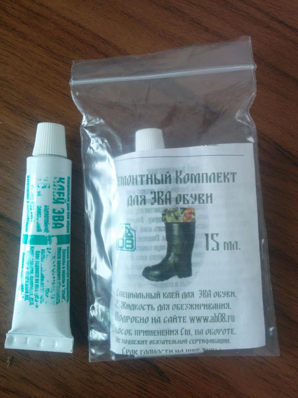 В этом сезоне поменял РОКСы на Lemigo (материал ЭВА). Сапоги конечно прикольные. На ноге их не чувствуешь, в то же время в них очень тепло, особенно в динамике. Но есть и некоторые недостатки. Как уже писали выше, в сапоге конденсируется влага. С РОКСами такого не наблюдал. Во-вторых сам по себе материал ЭВА очень нежный. У меня после поездки на Березину обнаружилось несколько проколов (шли по полю со скошенной травой). На днях оказался в магазине, где покупал сапоги, и рассказал о проблеме. Предложили вот такой клей за 30 тыс.: