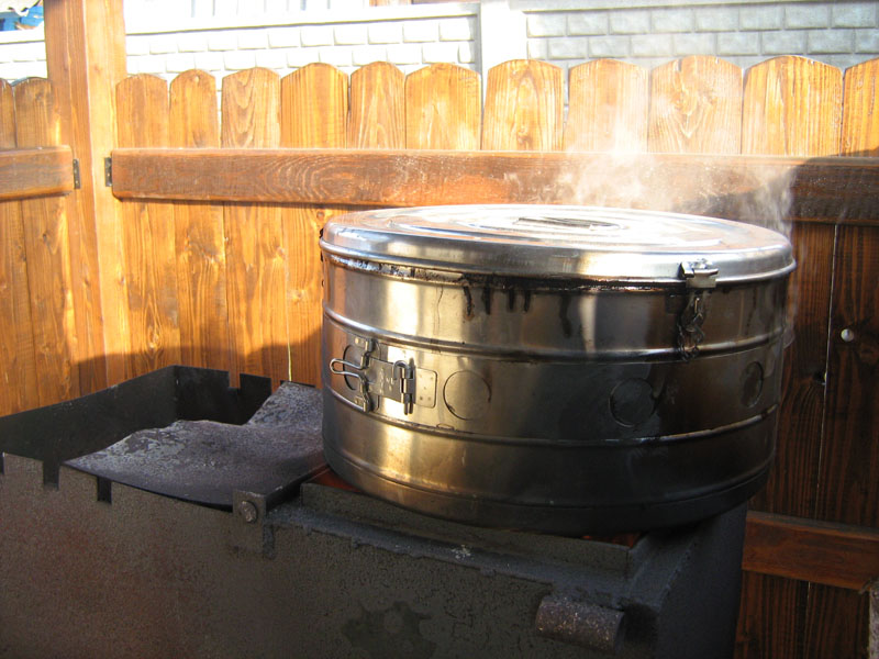 • сегодня видел в продаже коптильню, небольшая, не разборная, толщина металла 0,8мм, внутри 2 этажа для продуктов, поддон с ручкой, крышка задвигается на коптильню. Цена 185 тыщ. Размер ориентировочно 30см высотой, 45-55см длинной и 35-40см шириной.