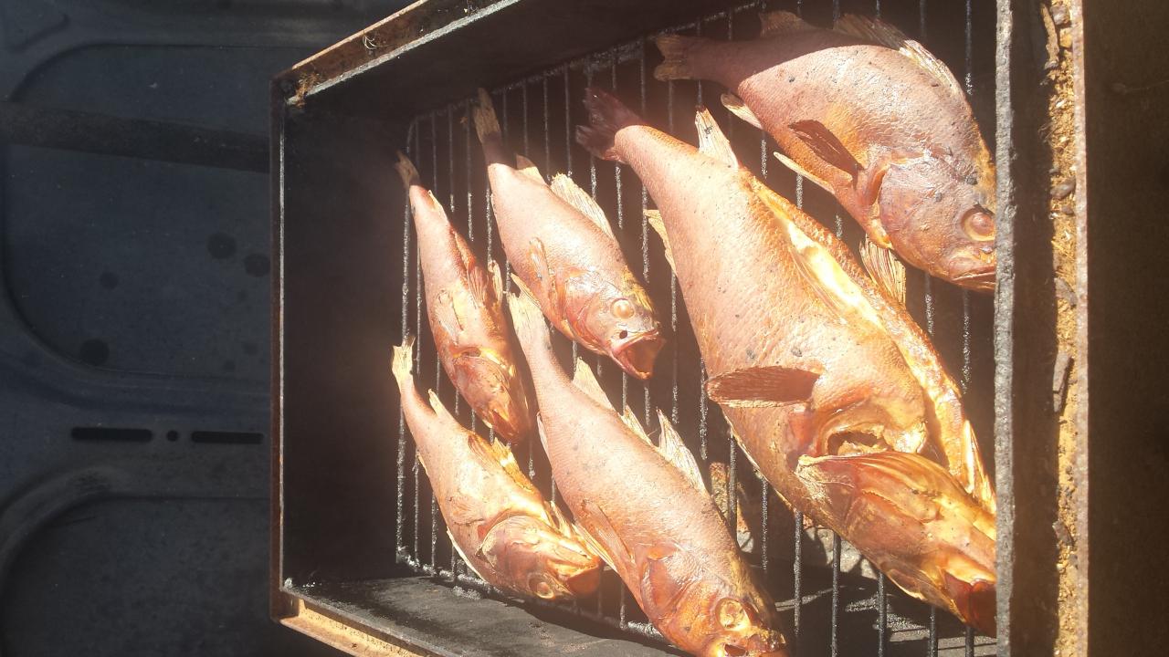 На рыбалке в наших широтах, кроме угря, в коптильне наиболее сногсшибательно выходит сом, при чем мелкий, до 3 кило и лещ. Съедается как теплый, с пылу, с дыму, так и холодный, на завтра. Важное условие при размешении рыбы в вертикальной коптильне - ее обвязка с петлями расположенными на расстоянии 5-7 см друг от друга.