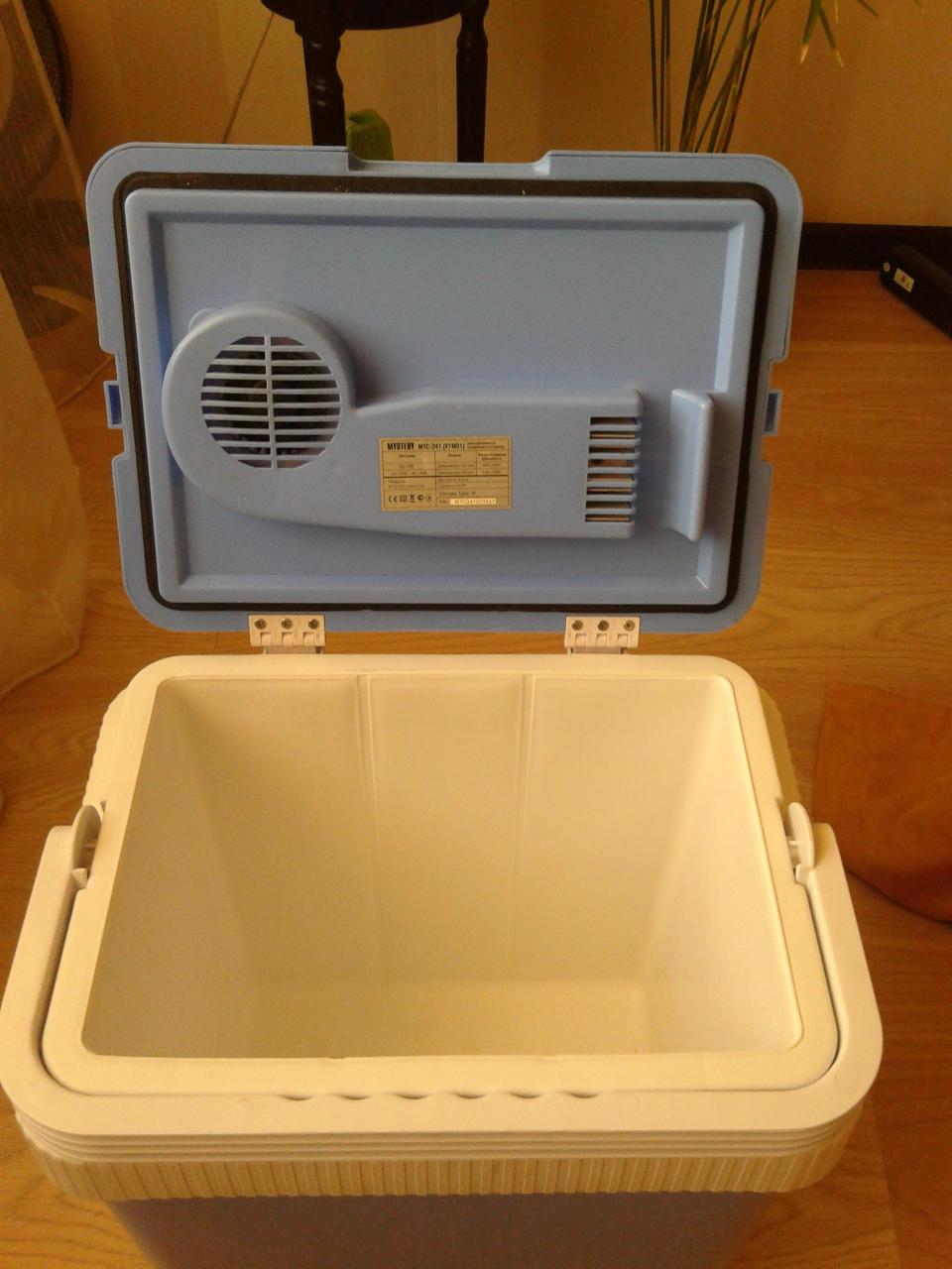 Термоэлектрический автомобильный холодильник объемом 24 л. Ударопрочный пластиковый корпус с антибактериальным покрытием внутренней части. Охлаждение происходит при прохождении постоянного электрического тока через термоэлектрические полупроводниковые пластины, одна часть которых находится внутри камеры холодильника, а другая снаружи. Работает от сети 220В и от автомобильного прикуривателя 12В. Функция охлаждения, функция нагрева. Максимальное охлаждение 14°-16°C ниже температуры окружающей среды (не ниже +5°C). Максимальный нагрев + 55°C. Вес 4,2 кг.