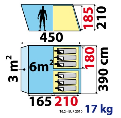 Размер внутренней палатки (210см x 160см x 170см) x 2