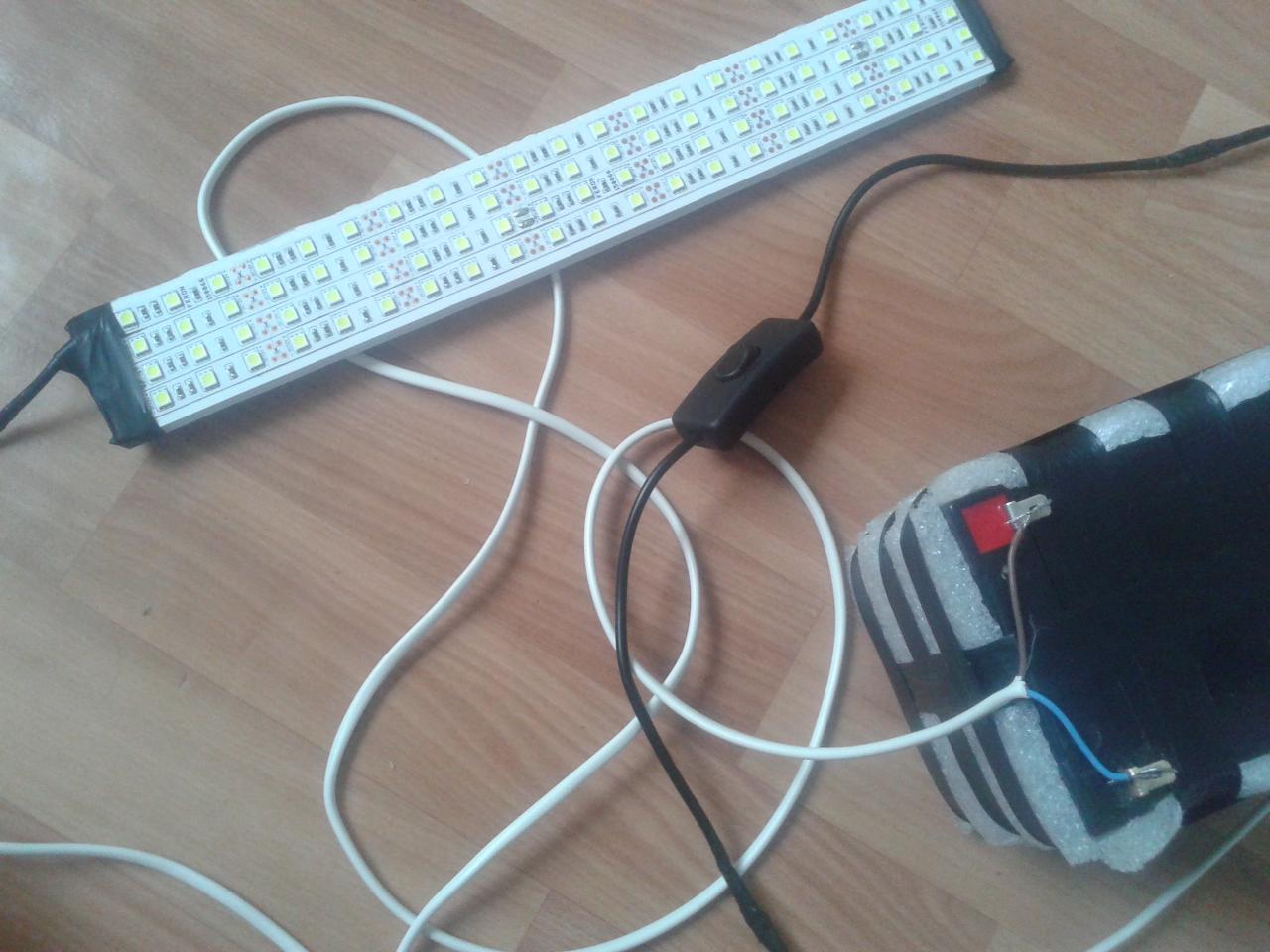 • Я пользуюсь гелевым 7aч, подсветка лунок из кусочков от ленты светодиодной по 3 диода на каждую лунку, и основная фара тоже из кусков диодной ленты запаралеленных между собой 18 диодов. 2 ночи горит без перерыва, больше не пробовал