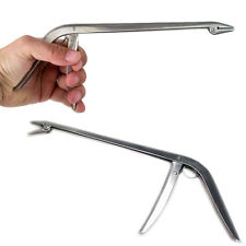 Как на курок надавишь так и держит, но удобней пинцета, т.к. давишь сжимая кулак а не 2 пальца, и рука в стороне, от зубов, если дернется, ну и растапыривать как пинцет не нужно, вставил, в крюк уперся, нажал и вывернул. Америкосы, которые ловят маски, тыщу лет используют такой хук аут, у них он классика, как у нас хирургический зажим)