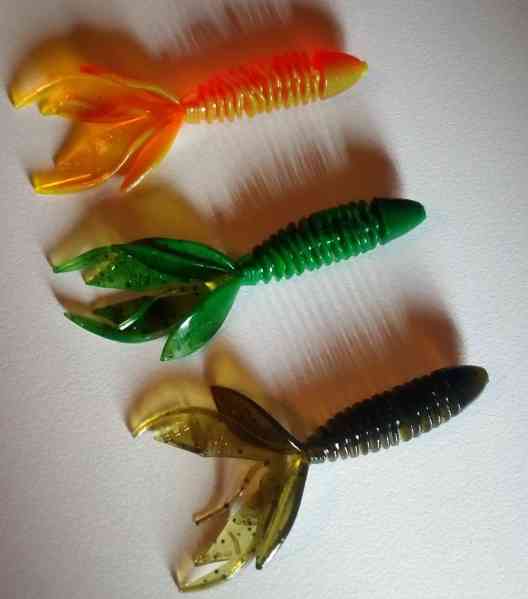 Продавец выполняет все капризы,кроме количества:меньшую партию не отправлял.Хочешь- одной модели,разных цветов,а хочешь разных козюлек,но одного цвета.Только вот цвет "в реале" может оказаться чуть искажён,по сравнению с фото.Я брал коричневый и зелёный,так вот зелёнынй,который у него на первом фото,в действительности ярче,зеленее,а в воде так вообще какой-то прикольный оранжевый флуоресцентный окрас принимает...Повторюсь:окунь оценил.:)