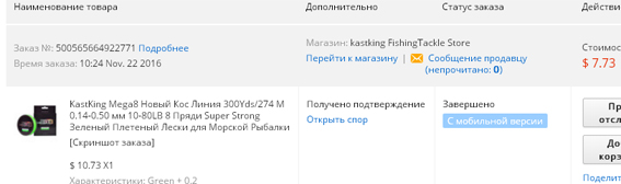 Да у меня новых спиннингов уже год точно не было :) А плеть эту (именно в диаметре 10 лб, у них она идет как 0.2) брал на рабочий комплект на замену ПП-шке 10-либровой, что использую при ловле судака. Она диаметром тоньше, летает лучше, реальная восьмижилка, хоть и не самая мягкая. Ведет себя абсолютно адекватно, рвется на узле с усилием, меня устраивающим, не лохматится, краска не сыплется. В сопредельном государстве отловил ей три дня на лососевой речке, припарковал клюватого самца на пятерку где-то, все выдержала достойно. Вобщем, использую ее где-то с сентября - пока нареканий нет. По морозу один день ловил - скорее всего рабочий участок выкину, там где к кольцам примерзала - повредилась, побелела. При той цене, что я за нее платил, особенно после 11.11 - не жалко абсолютно.