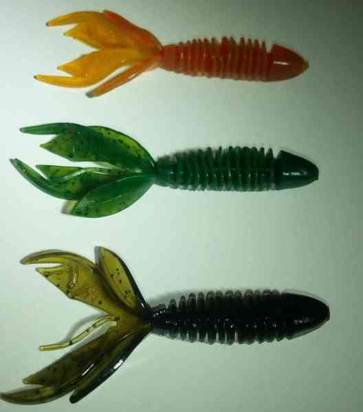 Продавец выполняет все капризы,кроме количества:меньшую партию не отправлял.Хочешь- одной модели,разных цветов,а хочешь разных козюлек,но одного цвета.Только вот цвет "в реале" может оказаться чуть искажён,по сравнению с фото.Я брал коричневый и зелёный,так вот зелёнынй,который у него на первом фото,в действительности ярче,зеленее,а в воде так вообще какой-то прикольный оранжевый флуоресцентный окрас принимает...Повторюсь:окунь оценил.:)