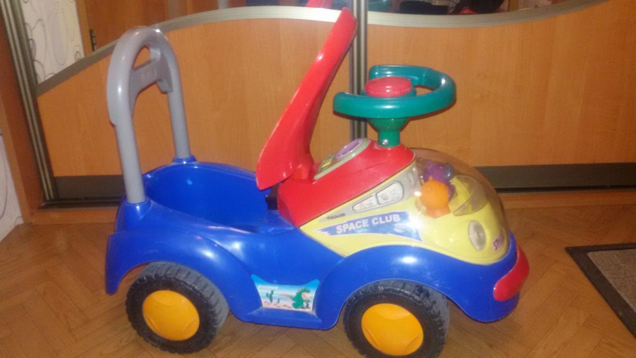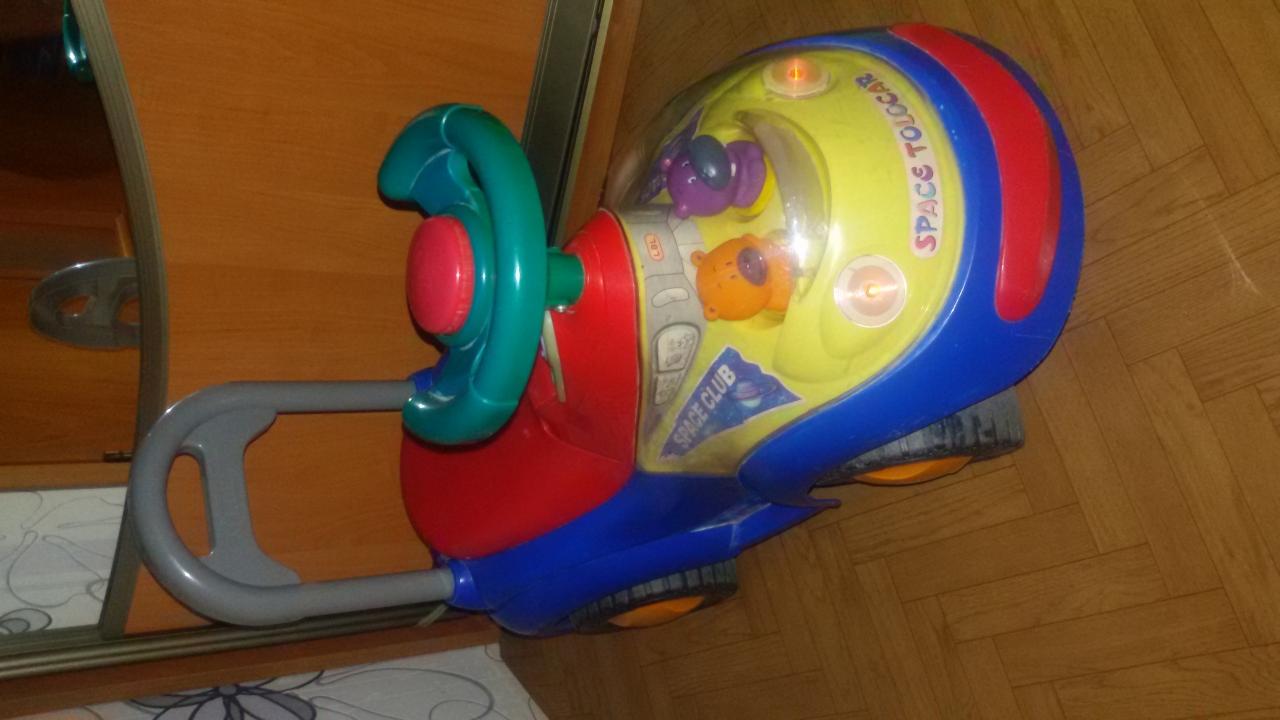 Продам машинку-каталку Space Tolocar б/у, в хорошем состоянии, все свето-музыкальные эффекты работают (светятся фары, включаются поворотники, проигрывает несколько мелодий)