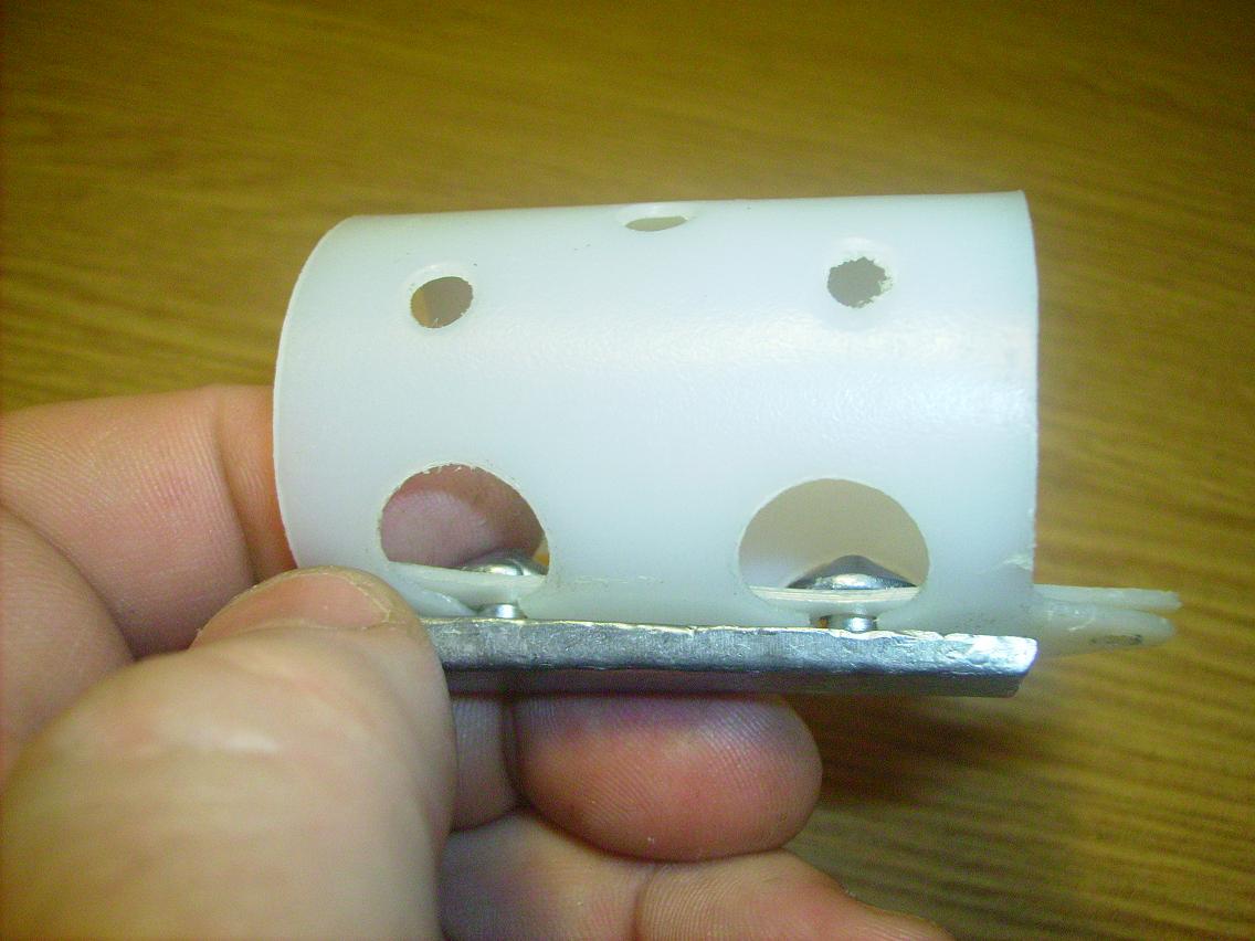 Конечно, можно было решить проблему путем переноса расположения саморезов на грузе (увеличив расстояние от края корпуса). Но был выбран новый материал корпуса - порезана канистра ;)(жаль, черного цвета не попалась под руку). Данная пластмасса сразу сняла вышеперечисленные недостатки ПЕТ.