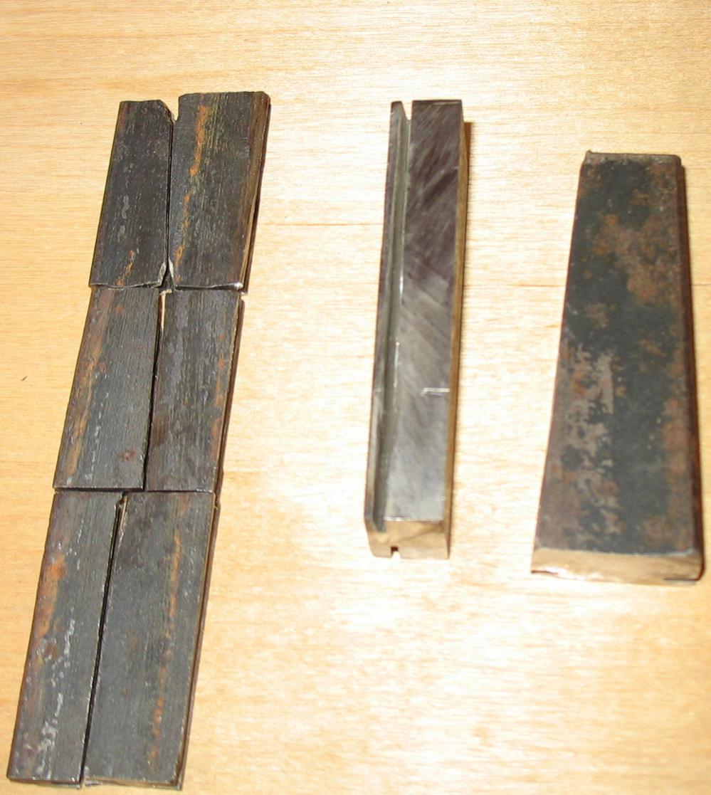 Кусок слева куски от железной полосы толщиной 4 мм, справа 9 мм