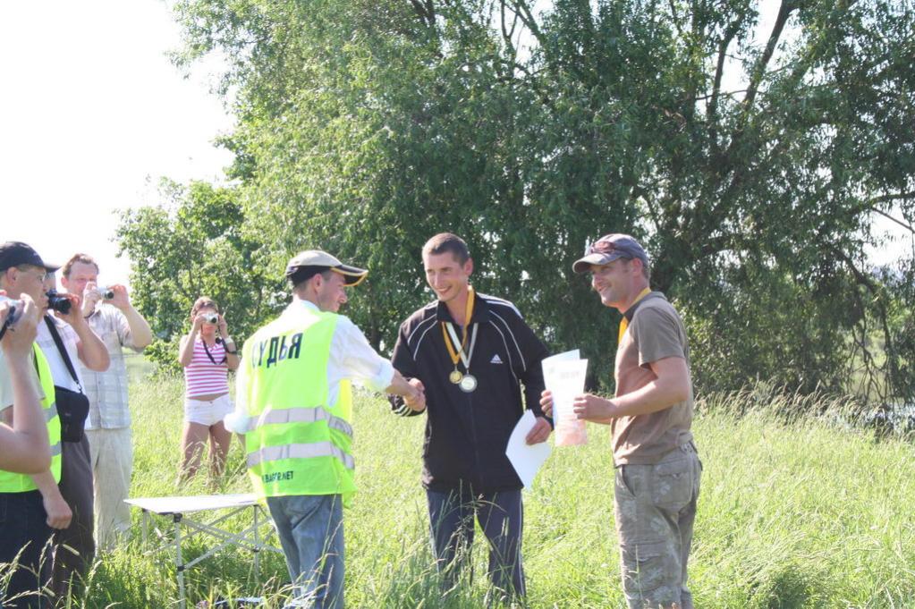 Снова поляна, флаги, жеребьевка и… Тот же сектор… Стиснув зубы принимаю поздравления за «халяву» и матерясь про себя иду дочищать водоросли. На этот раз уже тупо разделся и под радостные повизгивания своего фотографа полез в темные и холодные воды Днепра доставать зеленые ниточки… Разбор, оснащение, замес, старт… Клевала та же густера, только с разницей что лещик так и не приплыл. Итоговых тех же дежурные 2.5 кг на взвешивание (зная что кто то леща приговорил) и бреду с мрачной физией на построение, где мне как гром средь ясного неба – первый в зоне! О как! Морду рвет улыбка, настроение быстро поднимается… Награждение, фотки, дорога домой…