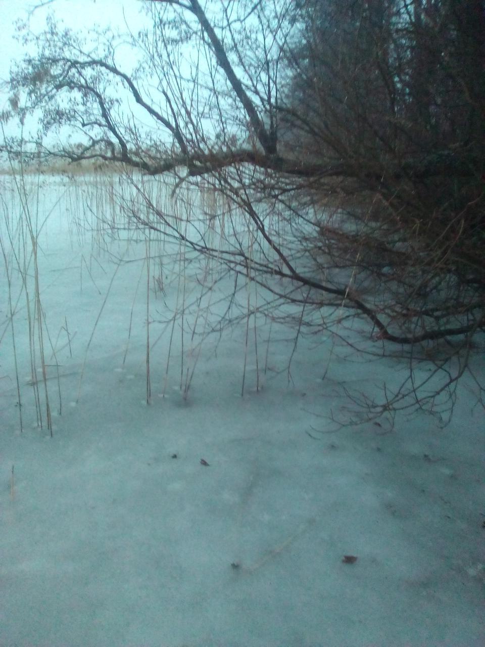 ...Лёд везде хороший, ходил по всему озеру... Как и многих меня сначала пугали черные пятна на льду, Но найденные старые лунки на них не были размыты, пытался замерить толщину рукой, лед достаточно толстый , прозрачный как стекло, говорит о том что крепкий, а хрустит не лед, как пишут, а верхняя тоненькая корочка, подтаевшая днем и замерзшая ночью... ну а про камыш я думаю писать не нужно в такое время это для любого водоема опасное место для такой поры...