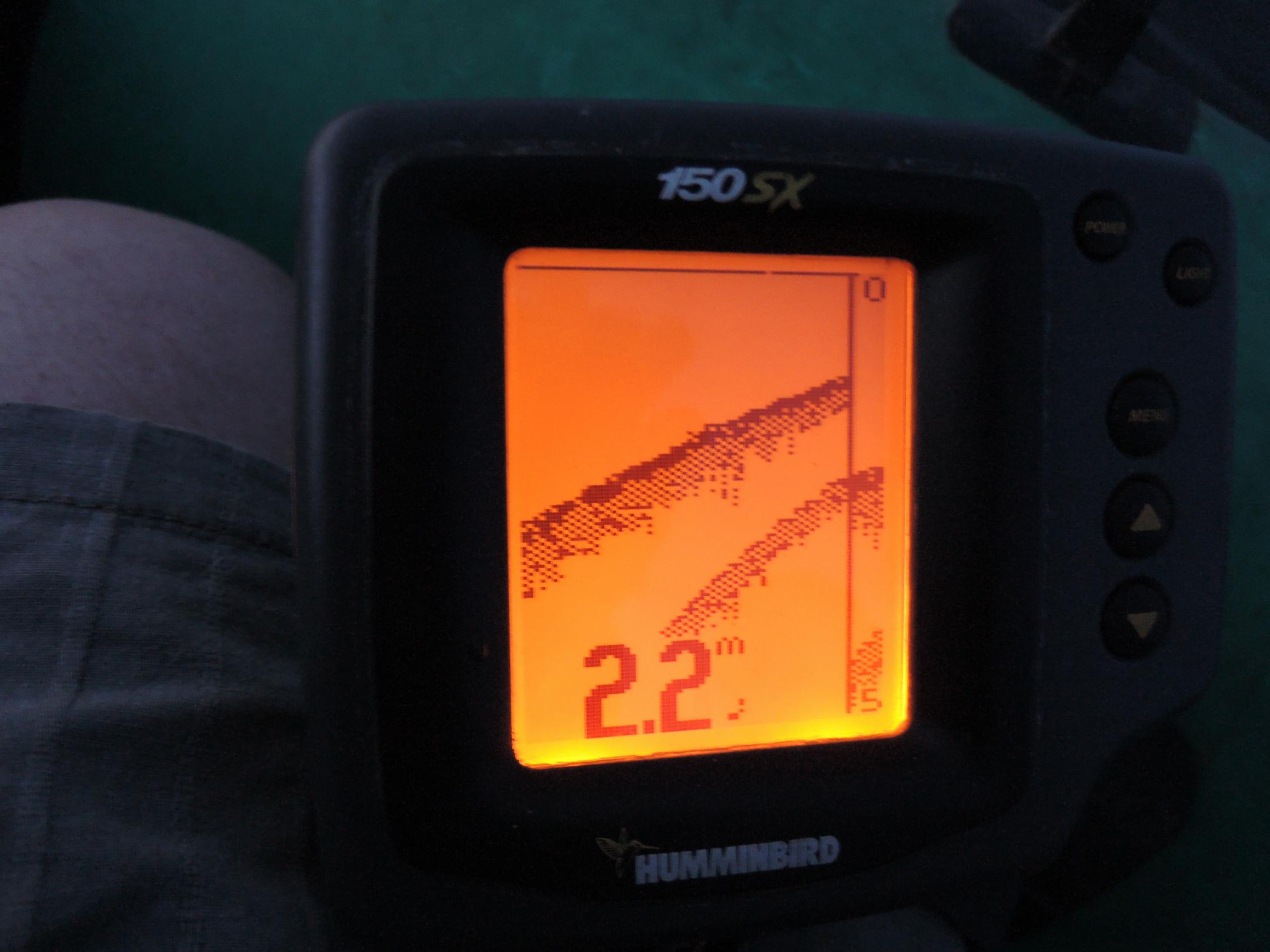 Пока плыли до точки, удивил рельеф в некоторых местах посреди озера.