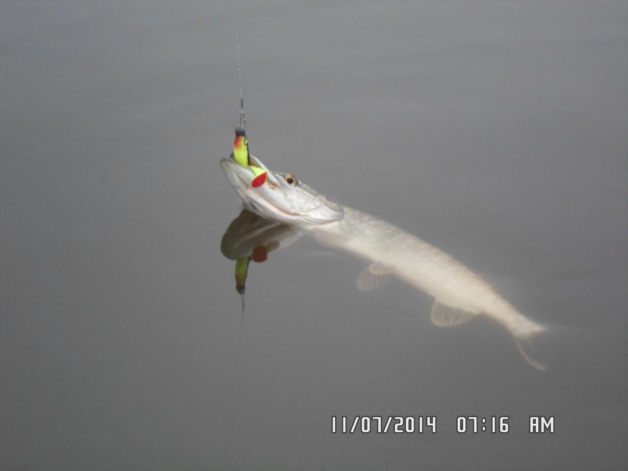 Был на Вечере 29.11.14, 30.11.14, лично мне пахвастоться нечем, но... В субботу метров 200 от нас примерно в часов 11:00 у мужика сработка, подтянул к лунке, но не было богра, разагнула тройник и смылась, говорил под 10 кг была, через часа полтора еще одна сработка, вытянул на 8 кг, метров 50 от нас еще у одного мужика сработка, дастал щупака на 6 кг. В воскресенье у нас тоже ноль, но у того что 8-ку поймал, за день 3 щуки, одна на 3кг, 2.5кг, 2кг. Метров 30 от нас парниша дастал на 5.7кг. Везет людям)))