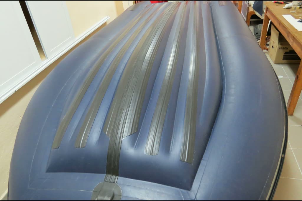 Лента стоила 3.20 за метр, сразу была мысля усиливать ПВХ, но не нашел нужной длинны в тон днища, цена может была бы и меньше , но вес однозначно бы был больше. Через год эксплуатации ваша лодка сама покажет те места где надо усилить...