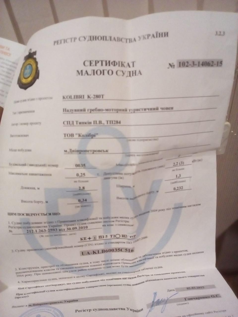 Это всего лишь подтверждение нахождения лодки в реестре Украины и никакого отношения к РБ не имеет. Вопрос может возникнуть только, сертифицирована ли она у нас. Да и тот я думаю не возникнет.