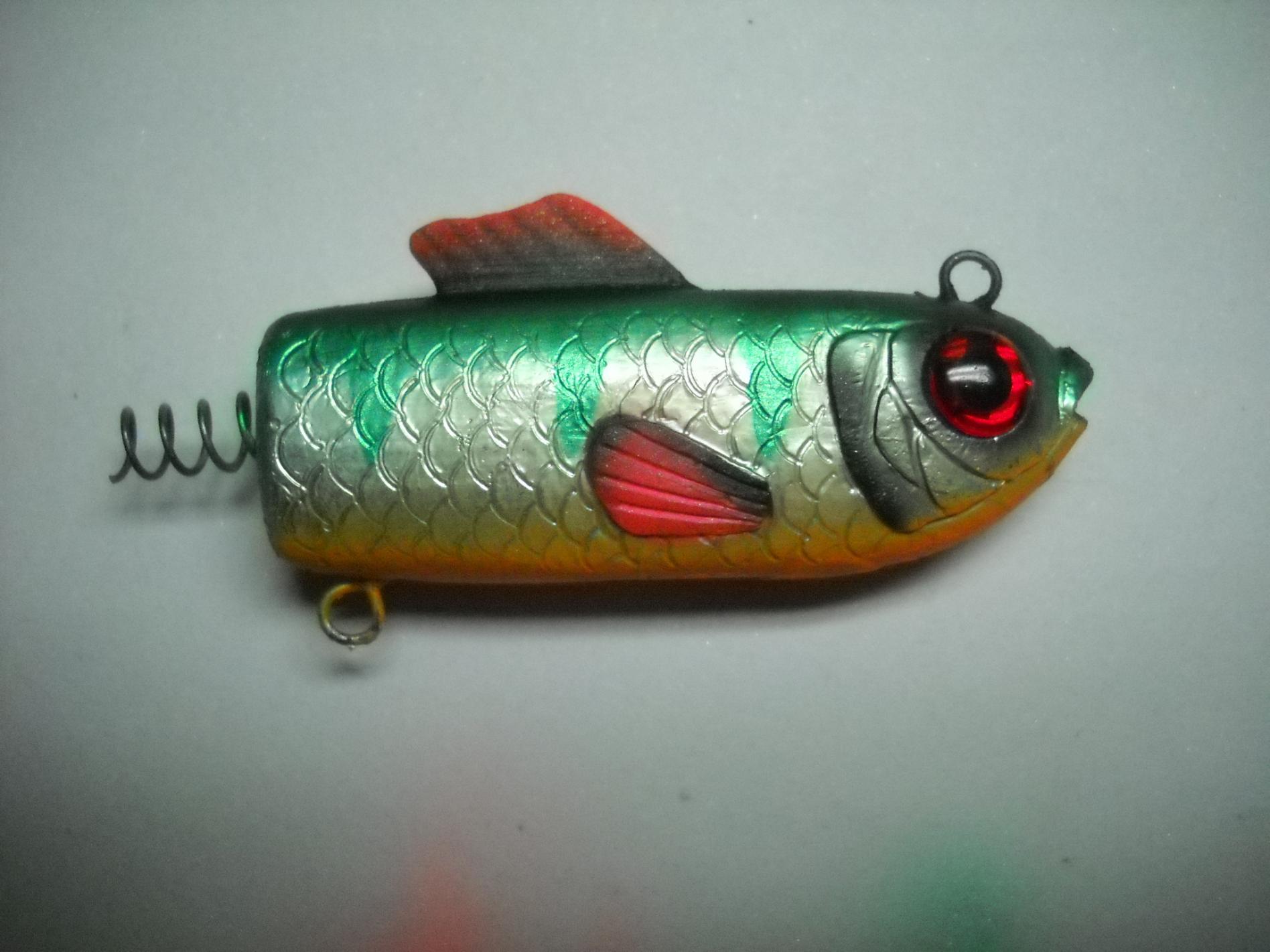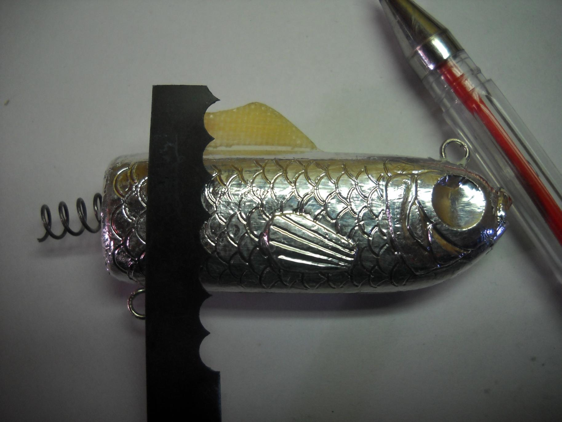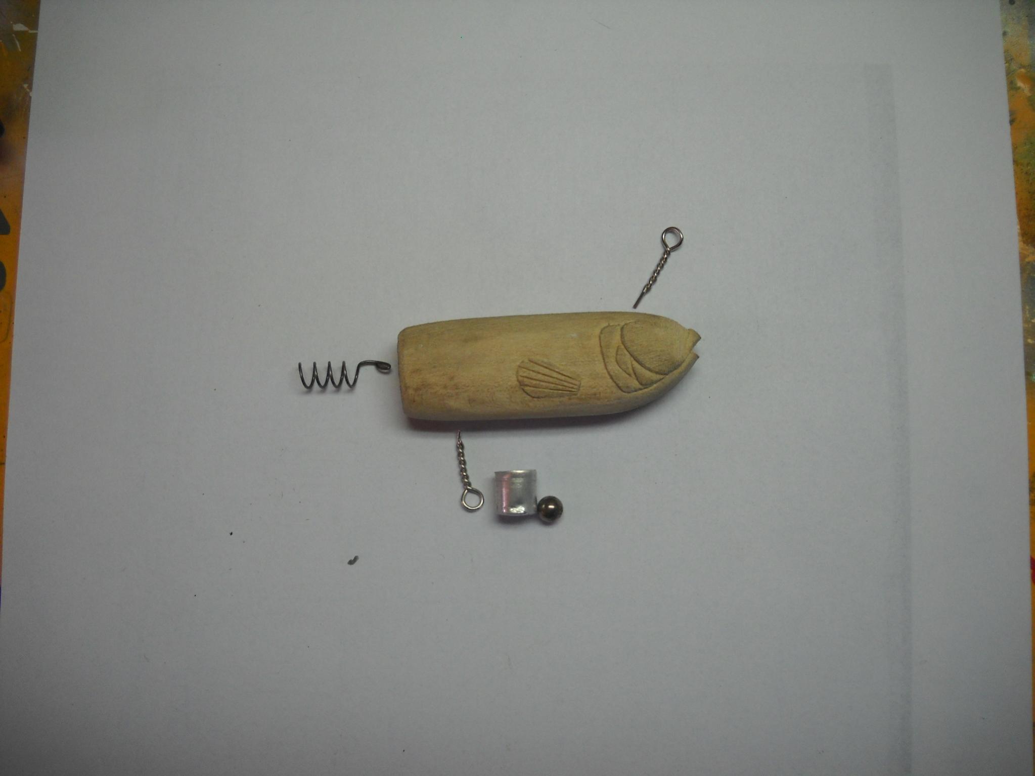 ID:	3633741, вклеиваем петли и пружинку (клей секунда), когда клей высох сверлим отверстия под шумовую капсулу и огрузку, затем пропитываем нашу приманку (я использую грунтовый лак капон), даем время высохнуть , вставляем капсулу и заливаем огрузку (использую олово, или шарики от подшипника) Нажмите на изображение для увеличения.
