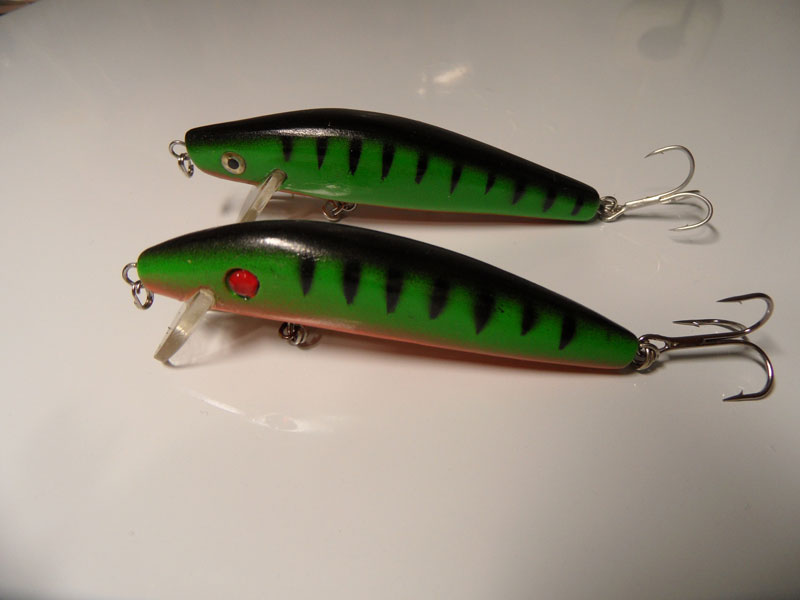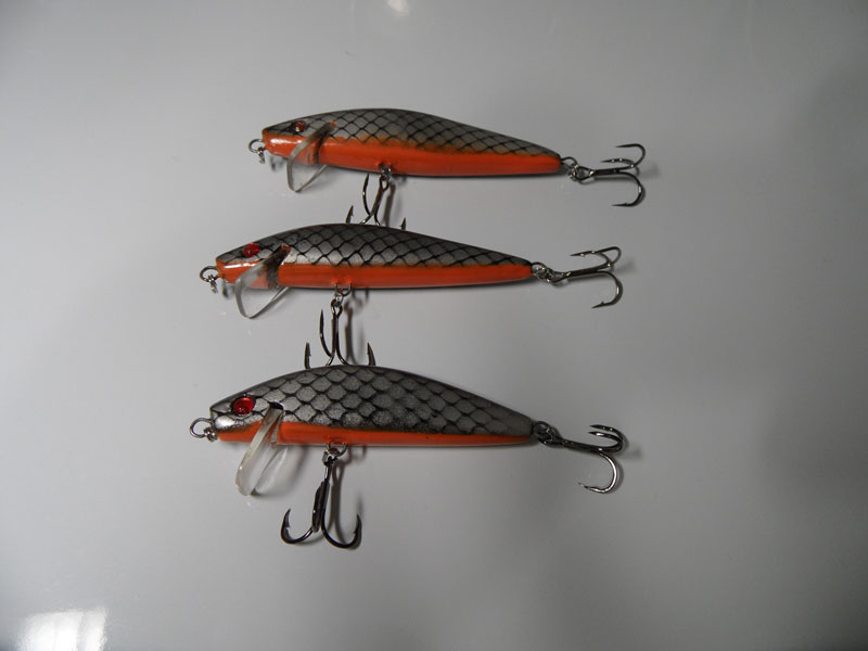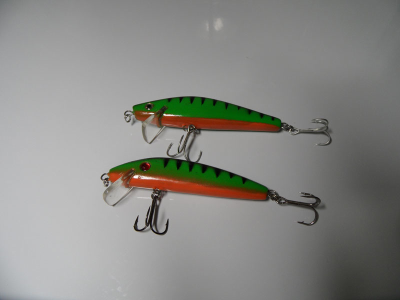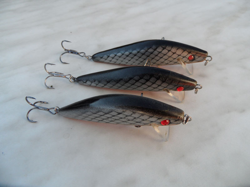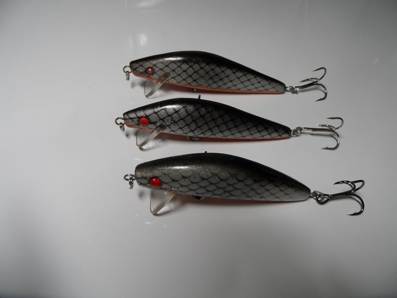 • Наконец завершил изготовление своих самоделок. За основу взял воблер воблер Yo-Zuri Minnow. Эти воблеры хорошо работают по щуке на торфяниках. Хотелось иметь воблеры с различным заглублением. Поэтому менял только длину воблеров и угол наклона лопаток. С расцветкой особо не мудрил. Серебристо – чёрная расцветка хорошо работает у моих предыдущих воблеров. А зелёно-чёрную расцветку проверил на воблере в сентябре, щука берёт.Нажмите на изображение для увеличения.