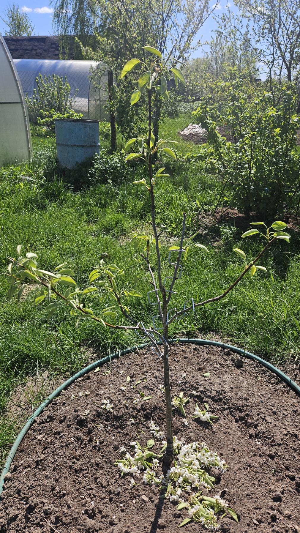 Оборвал цвет у молодой груши, учёл советы товарищей.