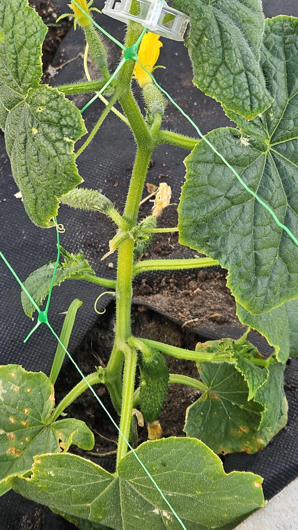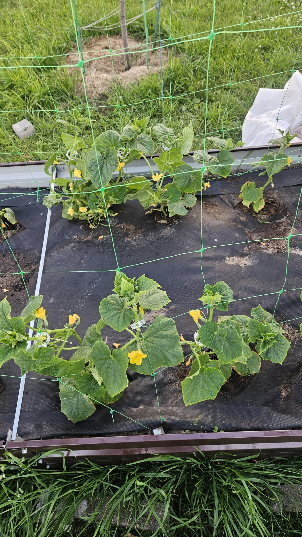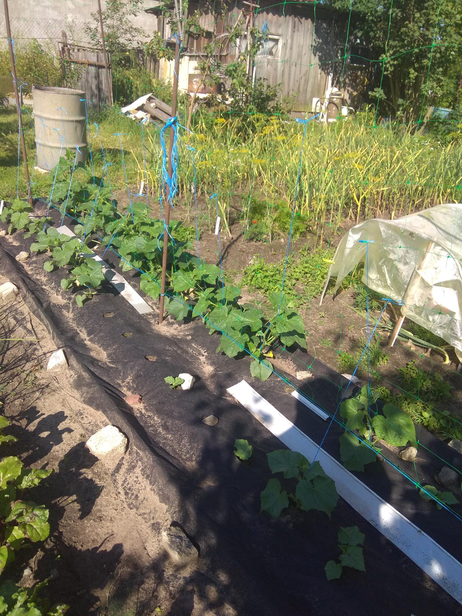 • Огурчики, наконец, начали расти на открытых грядках. Хорошо цветут, и доросли до шпалеры. Много цвета и мелких плодов. Думаю, что урожай будет.
