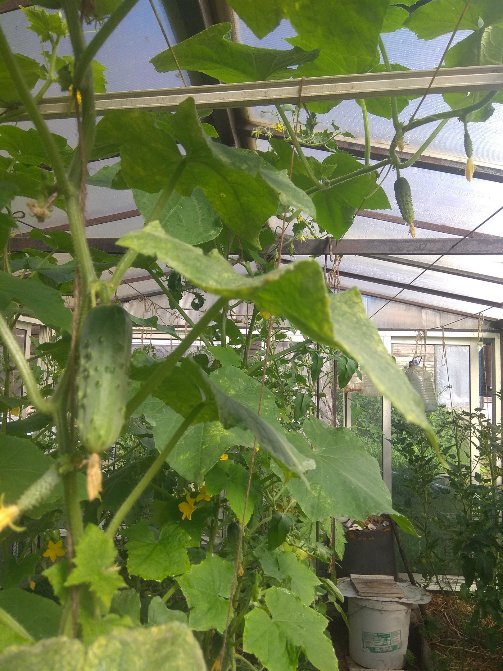Огурцы уже недели три по штук три пять ходим подворовываем , помидор