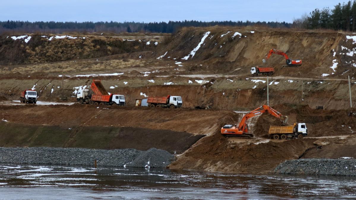 На Полоцкой ГЭС раскапывают дамбы вокруг плотины в Лучно. Очевидно, наполнение водохранилища намечено на зиму.