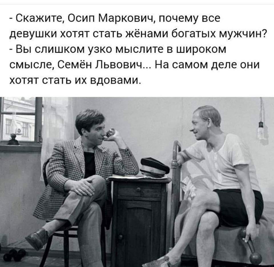 Сегодня я видела супружескую пару старичков, которые форсировали лестницу в подземном переходе. Они ползли вдоль поручня, поддерживая друг друга. Шедшие навстречу влюбленные с улыбкой переглянулись: «Давай встретим старость вместе!». «Шевелись!» — буркнул старик.