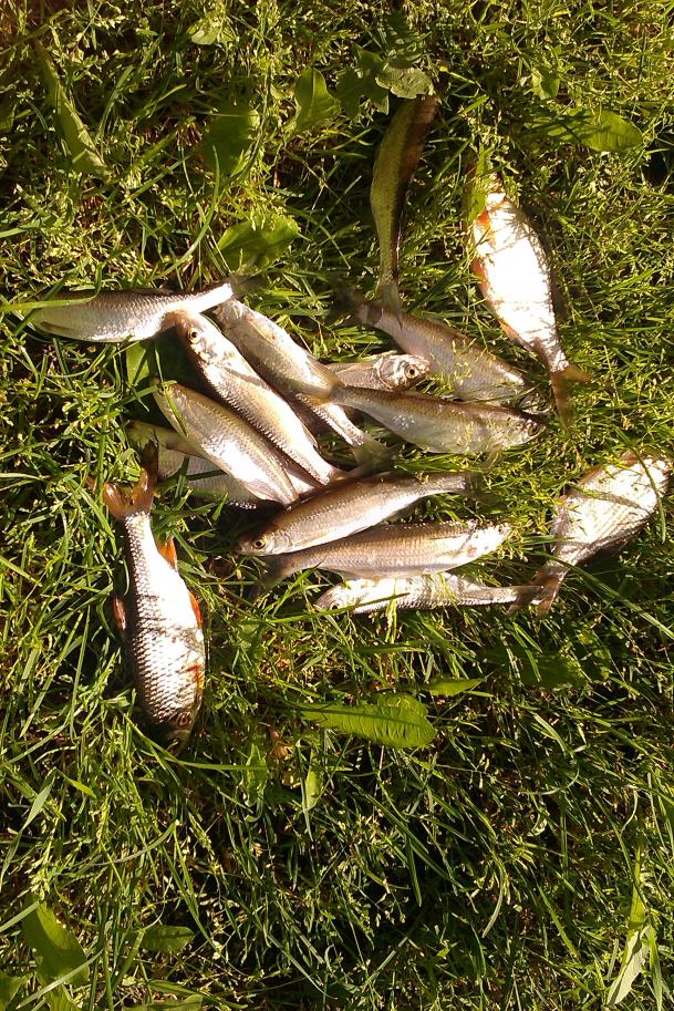 И я съездил с Братом в деревню, заскочили на Ушу и на Змейку, речки позаростали просто в хлам, на змейке видели много голавлей гр по 600, но на спин не протянешь, а на удочку не проведёшь:( а так хотелось споймать..ниразу на спин эту рыбку не ловил....полюбовались и поехали на пруды карасей ловить!