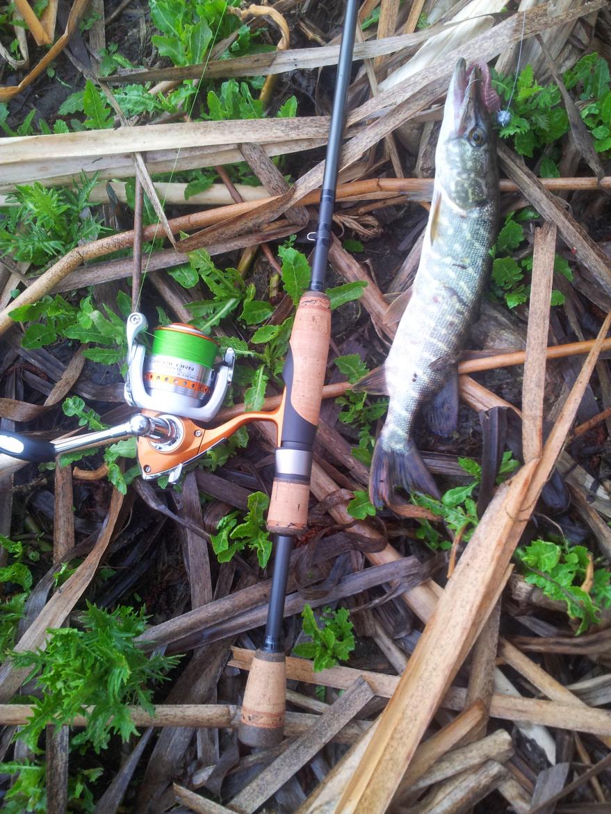 Был со вторника на среду. Ехал на неман р11, остановился посмотреть что за ручеек, с пятого заброса на yo zuri 44 села щучка 910 грамм. Пока ходил видел очень интересную картину, сфоткать сложно, но в поляриках видно было: голавль грамм на 600-800 на 30 сантиметровой глубине в метре от берега, за ним щука в три раза длиннее, причем шли вместе и это не было похоже на преследование, так, как будто, два другана, очень красиво. Вообщем, заночевал там. На спиннинг ничего, на фидер под кустами на длинный поводок на горох микроголавлики, но очень бойкие - длина с палец, а рука за подсаком так и тянется
