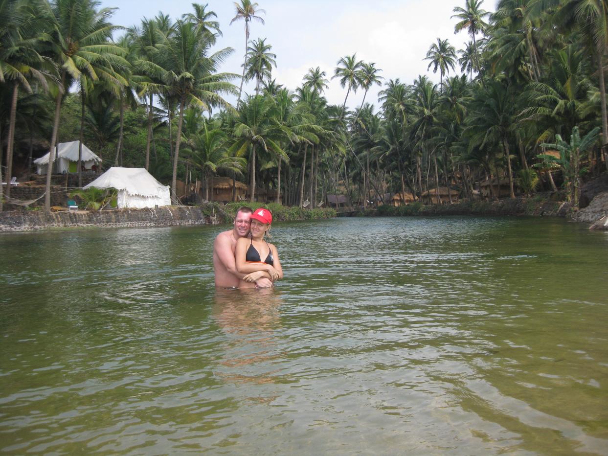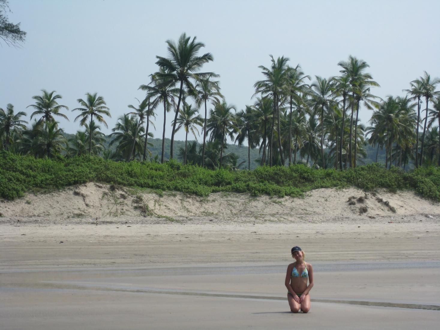 Ширина пляжа местами достигает метров 70-80 и если вблизи курортных зон есть туристы, лежаки с зонтиками, разнообразные кафешки, то на переходах от одной зоны к другой достаточно большие пустынные участки, где только ты и море. Вода в нем, конечно, не такая как в рекламе Баунти и на которую так любят ссылаться турагенты, но, тем не менее, очень чистая и мутноватый оттенок объясняется песчаным дном и практически повсеместно присутствующими волнами. Нигде, ни на пустынных участках, ни на людных пляжах в воде и на берегу никакого мусора. На оживленных пляжах время от времени с большими мешками ходят уборщики мусора и подбирают редкий мусор, брошенный необремененными культурой туристами. Побывал я и на так расхваленных все теми же турагентами пляжах Южного Гоа: Палолем и Кола Бич. Лично меня Палолем не впечатлил, а на Коле больше понравился канал с пресной водой.
