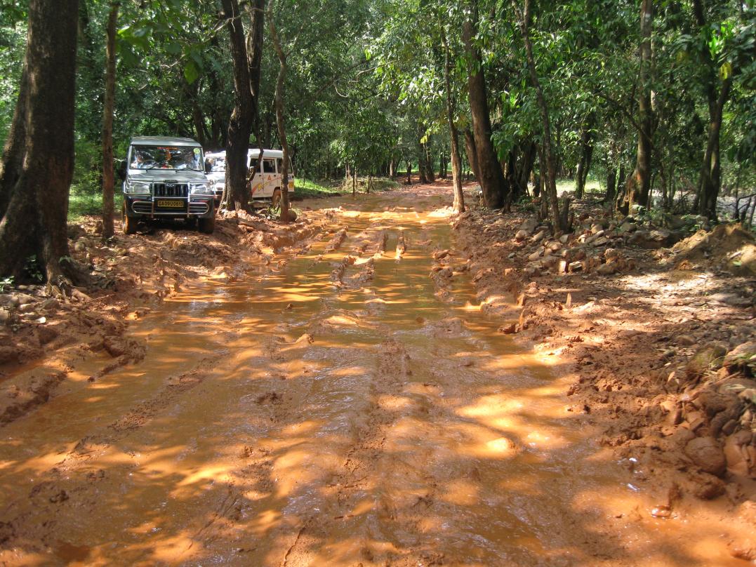 Кроме Олд Гоа съездили на водопад Дудхсагар и на, так называемое, купание со слонами. Очень понравилось на водопаде, являющемся вторым по величине в Индии. Всех туристов по 4-5 человек сажают в джипы:Лэндкрузеры, Патролы, местные Тата и везут через натуральные джунгли. По пути надо было пересечь 2 речушки и вода прямо заливалась в салон. А сама грунтовая дорога после дождей была просто превращена в красно-коричневую жижу, что делало поездку еще более увлекательной.