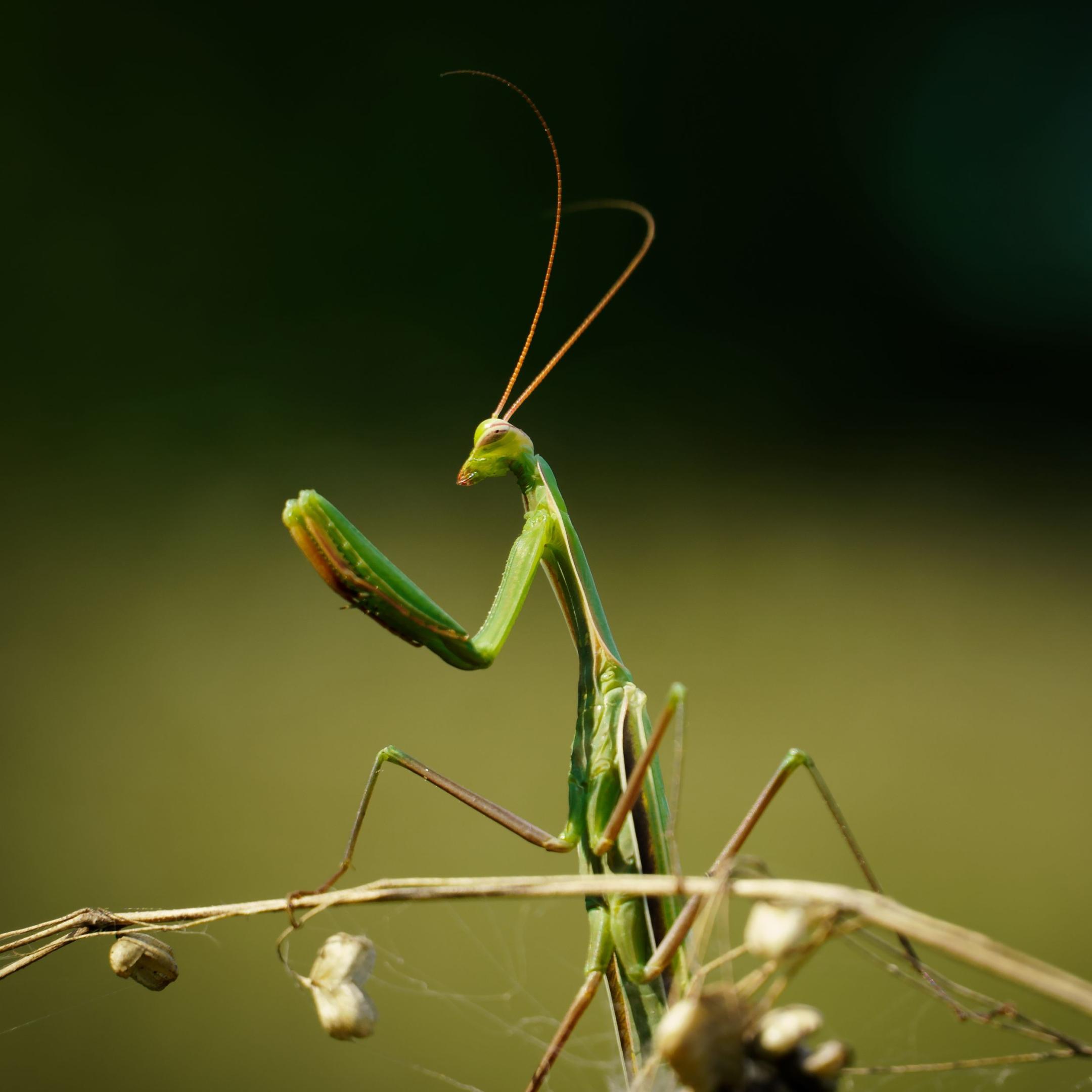 А пока мы с пацаном моим пошли богомолу тому́ какую муху поймать, кузнечика, бабочку или моль, богомол наш улетел по своим делам дальше куда-то. А может, - в зе́ркале моем он тоже теперь живёт?...))