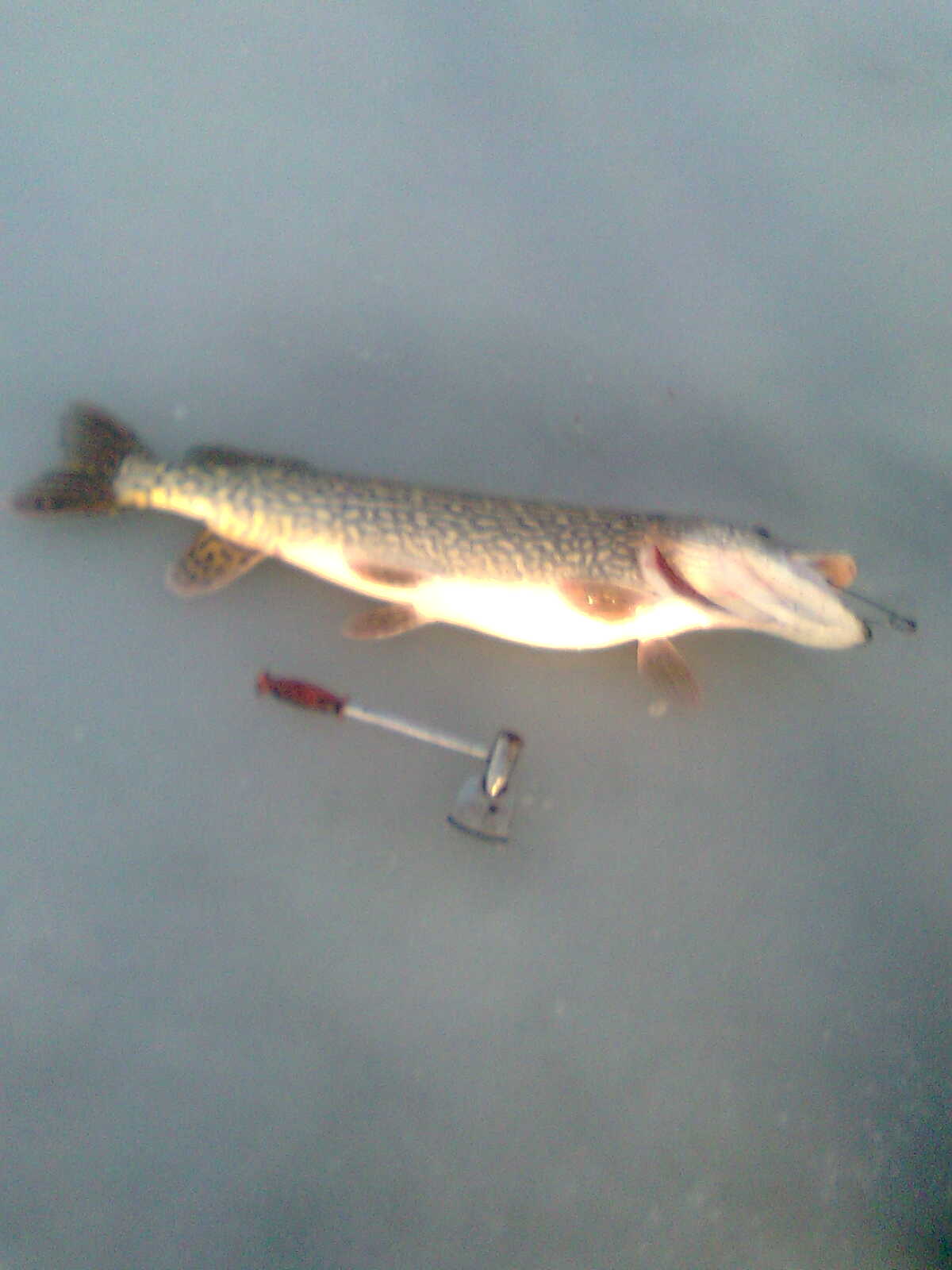 • Ну и дождался я наконец выходных еду на три дня 28-29-30 на Ситнянянское озеро половить щуку на жерлицы и подергать окунька на блесну. Утром с отцом с утра пораньше выставляем 18 жерлиц . Первая поклевка -сняла живца первую щуку поймали под вечер идем домой и надеемся что завтрашний день принесет успех.29- потемному уже на озере при самом рассвете срабатывает жерлица и первая щука на льду в 12.00 зовет отец поклевка идет с трудом нужна моя помощь бегу к нему подводим к лунке не идет беру бур и сверлим рядом дырки и разрубаем лед топором после небольшой борьбы шупак на льду. 30-2 поклевки и две пойманы.