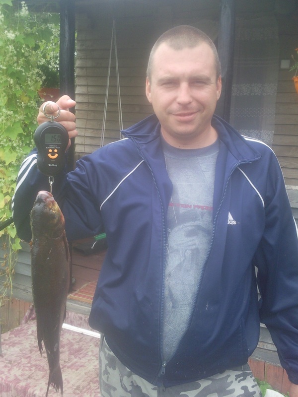 В пятницу 5.08 снова на деревню.Накопал червей,наварил прикорма поужинали и спать.Подьем в 4.00 и вперед.Через пять минут на месте раскладываю фидер и кормлю по своей схеме 15 кормушек.Привязываю поводок с крючком и вот первый заброс.Несколько секунд и первая поклевка.Подсечка и первый подлещ в руках на глаз гр 300.А дальше пошло поехало.Сперва на червя клев на на черных камнях,через час не хочет брать его.Цепляю перловку и опять поперло.Правда холостых поклевок больше чем результативных.Еще через час перловка не в почете.Ну да ничего червь с перловкой на крючек и вперед и клев нормальный но с подьемом солнца все чаще брала плотка.Взял пару плотвин остольное выпускал.Окунь не плохо гонял малька но червя не хотел.В 8.30 рыбалка закончена итог на фото.