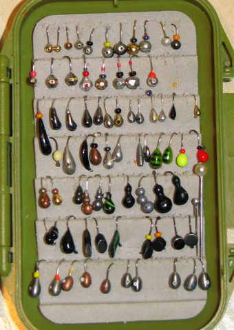 Все перечисленное касается ловли на большой глубине. Когда же под вами 1-2 м то я предпочитаю чем меньше, тем лучше. Леска потоньше, мормышка поменьше ..... и это чаще всего золотые дробинки и капельки 1-1,5 мм в диаметре.