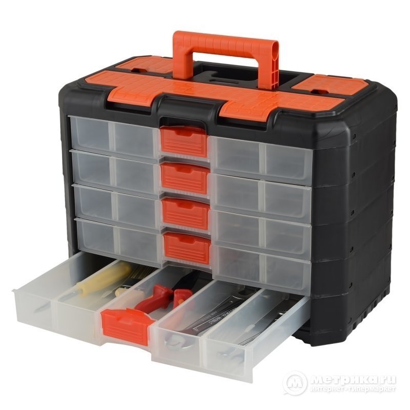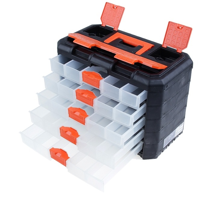 Попробовал такой ящик для шурупов. Для лодки выдвижные лотки очень удобно.