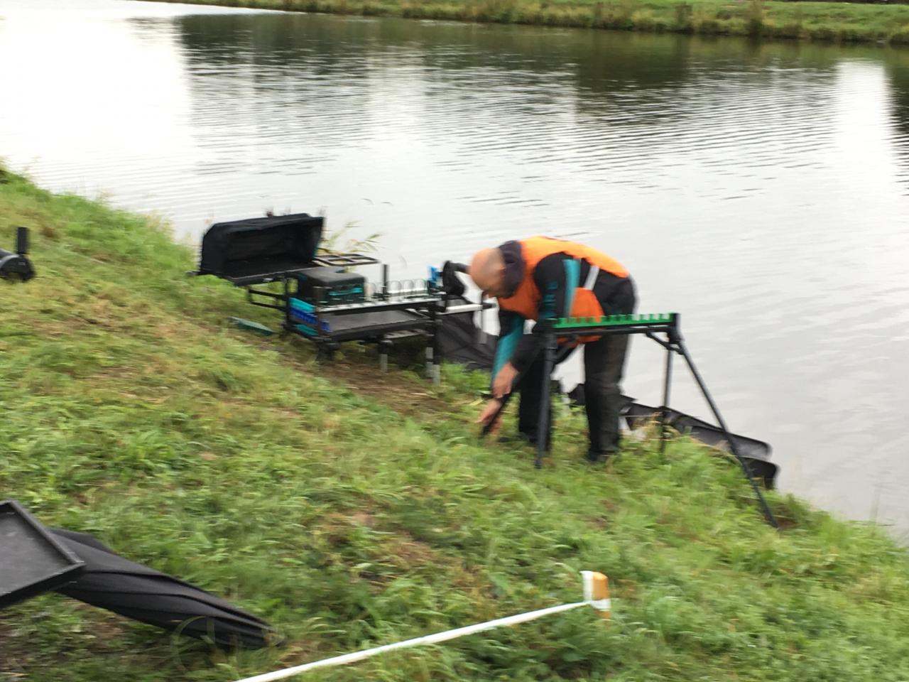 Евгению в зоне С тоже достался сильный сосед слева – будущий победитель зоны известный английский спортсмен Стив Хэммингрей, правда после неоднократных выступлений на чемпионатах мира и Европы это уже воспринималось им спокойно и без каких-либо эмоций. Плюс такого соседства в том, что можно очень многое подсмотреть, находясь в соседнем секторе буквально в 5-ти метрах от англичанина. Как уже выше говорил, шифруются ведущие спортсмены знатно, после проверки прикормки и животных компонентов, Стив поставил боком перед платформой большой дреннановский зонт диаметром 2,5 метра, закрывшись от зрителей, справа и слева от зонта он буквой П установил по ящику с оснастками, максимально закрывшись еще и от соседей-соперников. Внутри этого выгороженного пространства он готовил то, чем собирался кормиться со старта и во время докорма. Поскольку я имел право находиться непосредственно в секторе Евгения и ящик с оснастками у англичанина с этой стороны был значительно ниже, то мне удалось увидеть то, что обычно скрыто от посторонних глаз зрителей и наблюдателей соперников, причем вариант выкармливания леща на 13-ти метрах разглядел в деталях и это нам, несомненно, пригодится в будущем. Мне сейчас понятна ставка англичан на леща, они четко просчитали, что на плотве выиграть у очень сильных команд Бельгии и Франции невозможно, те обладали значительно большими знаниями особенностей водоема, спецификой отдельных его участков, провели на нем намного больше рыбочасов. Перед входом в сектора после знакомства Стив, кстати, уверенно заявил Евгению, что они (англичане) здесь выиграют, причем основными соперниками Teem England он назвал не бельгийцев, а французов. К слову сказать, ставка на леща у Хэммингрея сработала, он не упустил свой шанс и сумел отправить в садок одиночного крупного леща, который вывел его на первое место в зоне с итоговым весом 4770 гр, правда если отбросить вес леща, то по плотве преимущество англичанина по отношению к остальным соперникам уже было совсем не очевидным. У Евгения стартовый бычок на двух дистанциях 4,5 и 6 метров хоть и был в достаточном количестве, но слишком мелкий, поэтому ему пришлось сосредоточиться на плотве, 10 штук за тур на дистанции 13 метров и сделали основной вес (2081 гр), при этом если 8 штук из них были словлены на мотыля выше дна, то две последние плотвы удалось зацепить на последнем часу на кастера уже непосредственно со дна.
