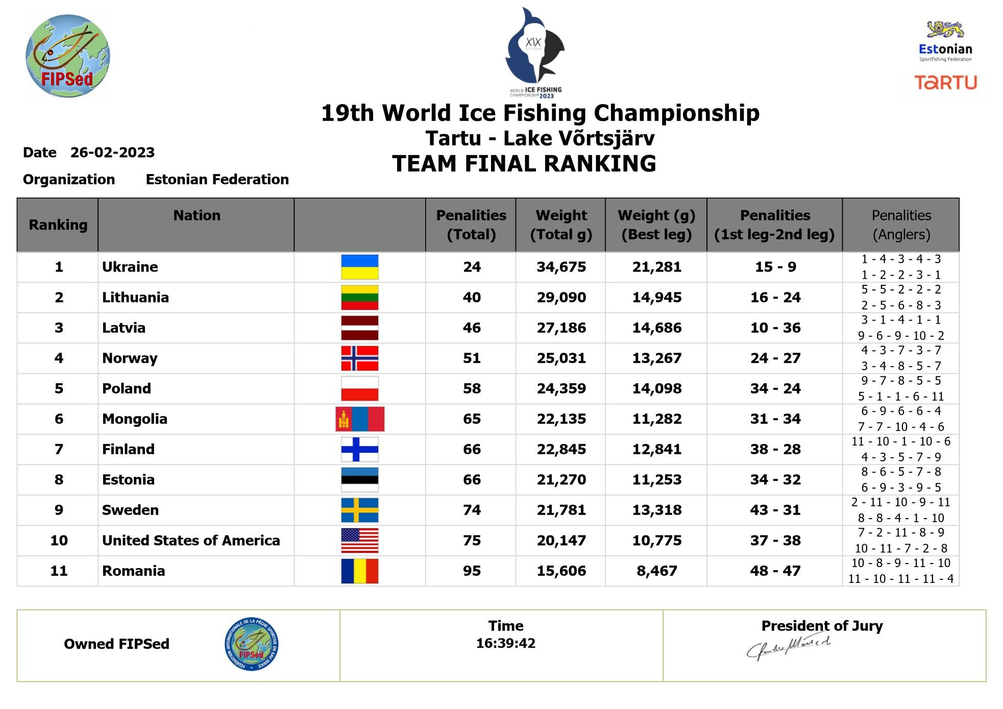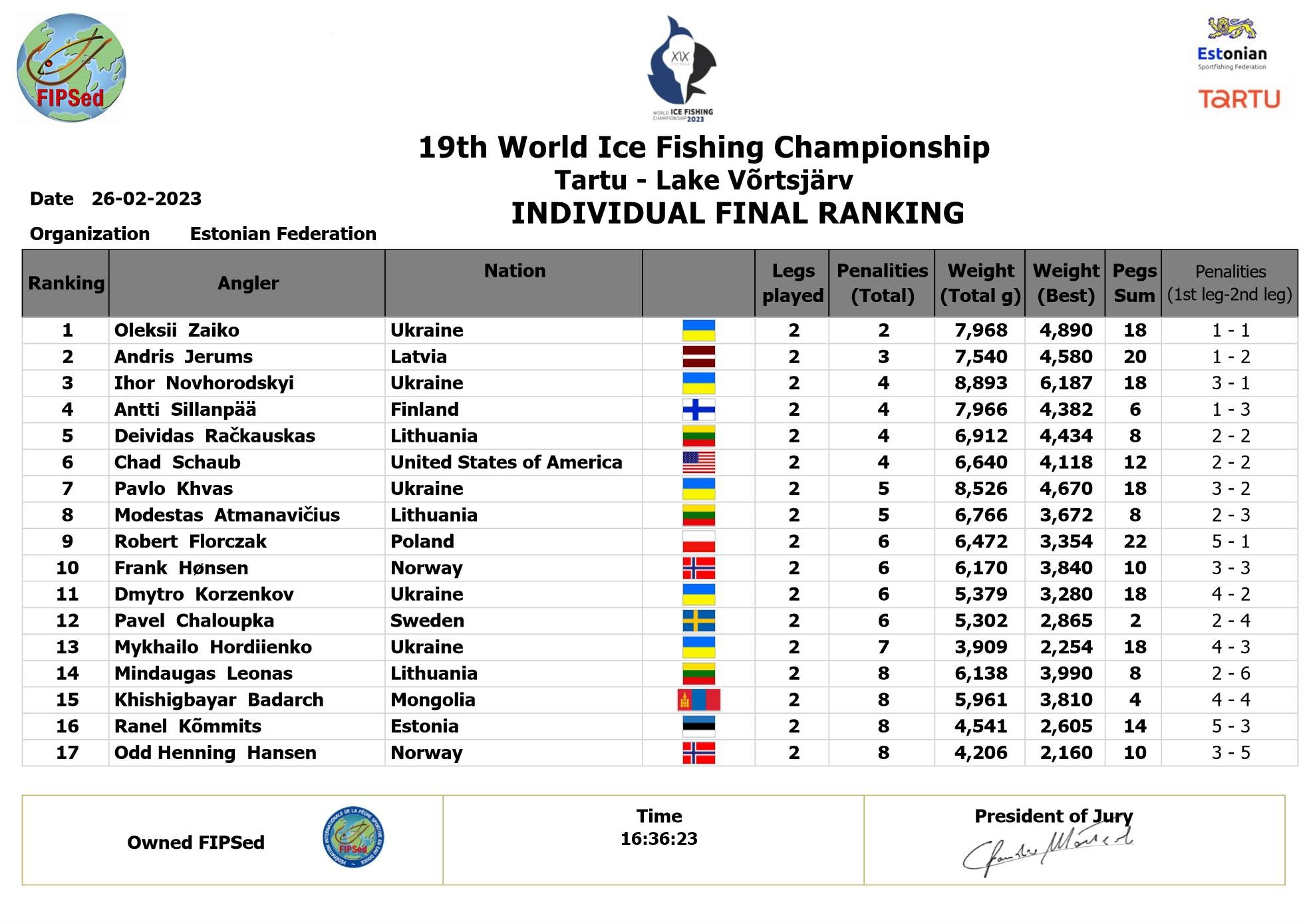 • 25=26 февраля 2023 года в Эстонии прошел 19 чемпионат мира по спортивной ловле на мормышку, на озере в окрестностях г.Тарту.