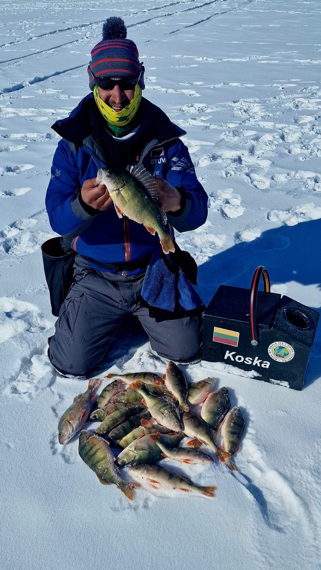 • Кришьянис Лисовскис из команды Латвии пишет в мордокниге, что ожидаются крутые соревнования. Помимо гор и солнца, которых очень много, есть много окуня в размере 100-400 грамм, и которого надо доставать с глубины 10-12 метров. Особый колорит придаёт лёд, толщиной 1,5 метра.