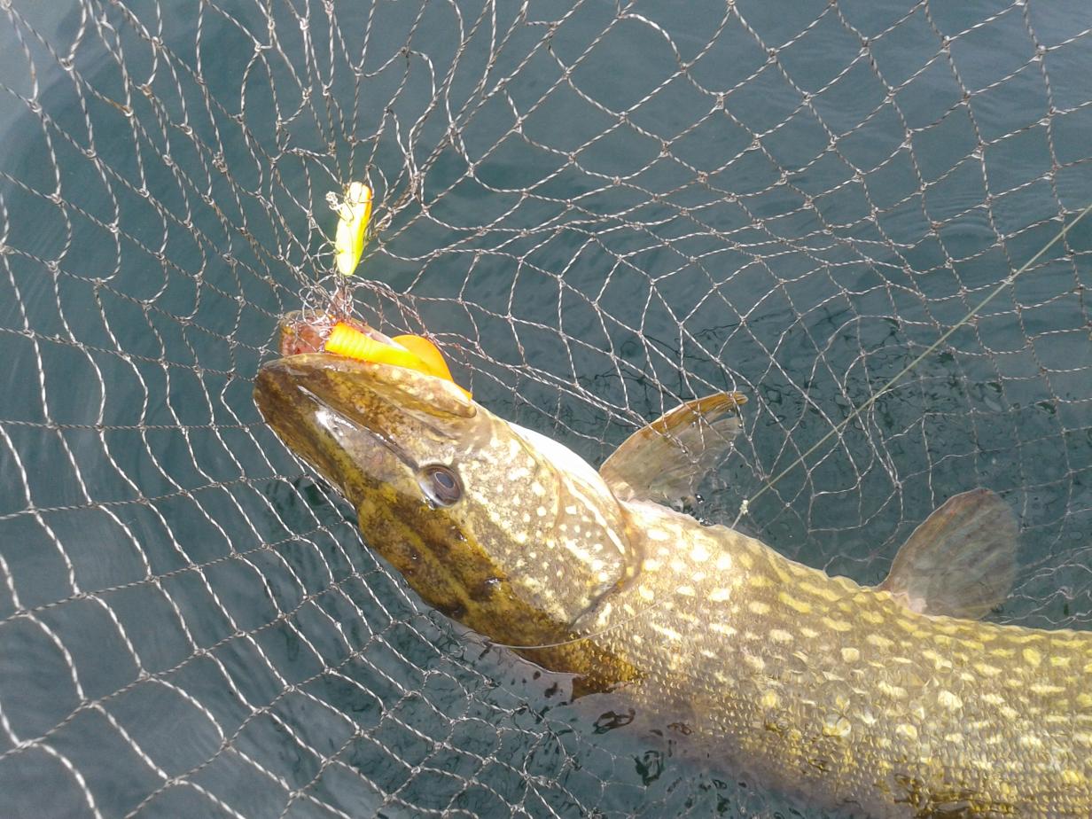 Приехал на озеро в четверг рано , выгрузил на рассвете квас и организационное добрО , поехал спустился в Стебенёво , там же и порыбачил в первый день. Прямо с утра словил парочку щучек на прошлогоднем хорошем месте в береговой зоне , на тот же самый заслуженный воблер из Байкала - Косадака Ион , в натуральных цветах с оранжевым пузом , с малой лопатой . Несмотря что ловля велась на 4-7 метрах , двухметрового его заглубления вполне было достаточно , когда щука активна она бегает почти по всей толще воды и отлично ловится . Это особенность глубоких и прозрачных водоёмов , кстати так же было и в Ирландии. В перекурах между набегами она располагается поближе к дну , и тогда рулит скорее джиг чем твич.