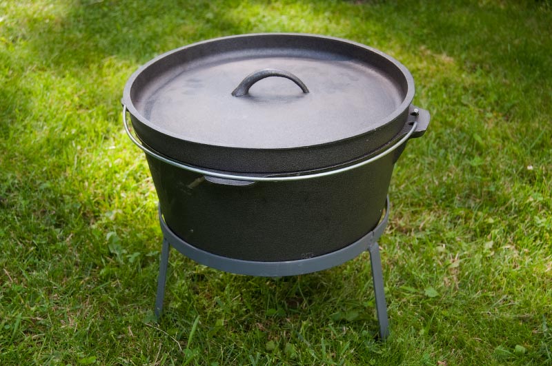 В комплекте мешок для переноски, тренога, крышка-сковорода (так же чугунная).