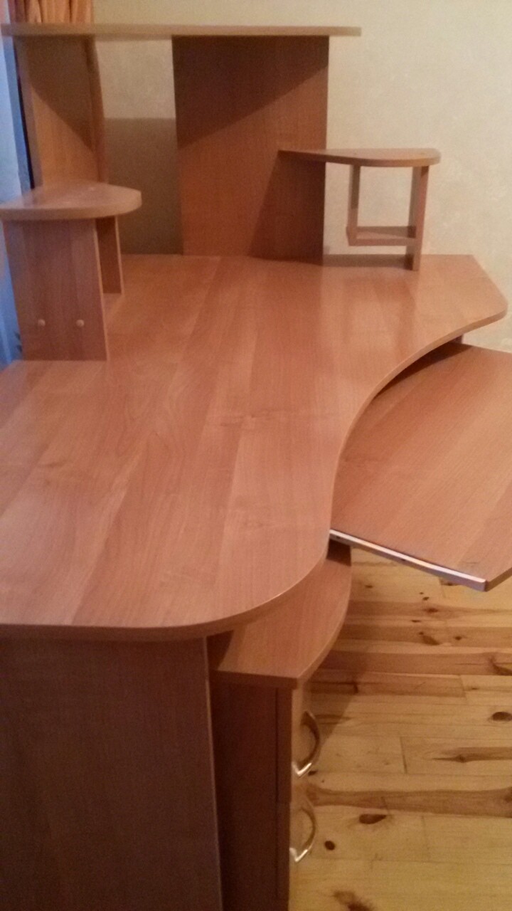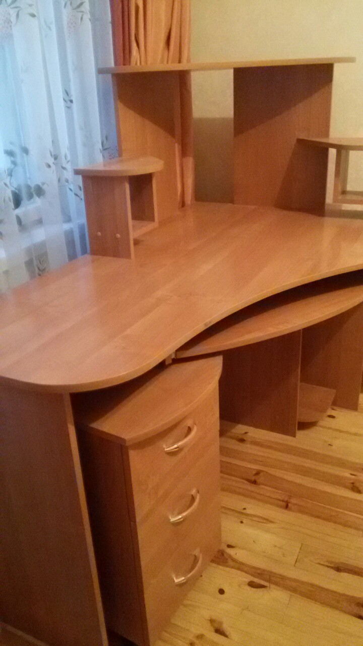 - стол компьютерный угловой, состояние нового (тумбочка, полки). Цена 850 т.