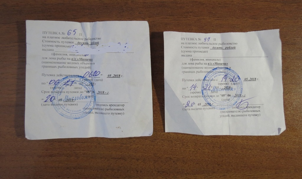 Были и мы с субботы на воскресенье. Заехали сразу за путевками. Егерь выписал каждому по путевке по 10 руб. (такие как на 1-м фото, не понимаю, в чем подделка), каждому по квитанции о приеме денег на оплаченные суммы. А водоем этот на сайте госинспекции по состоянию на 07.05.18г. Правда, как вы умудряетесь там ловить на спиннинг среди километров сетей, вопрос интересный. Мы поплавочники, нам проще.