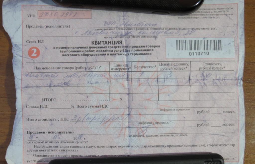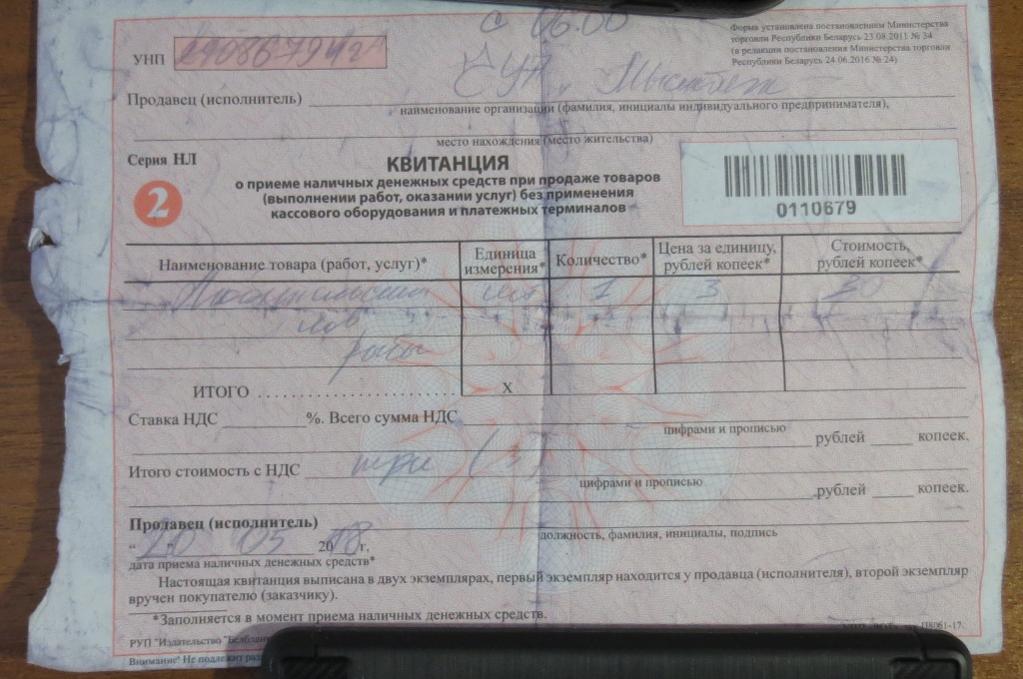 3. Квитанция к путёвке: