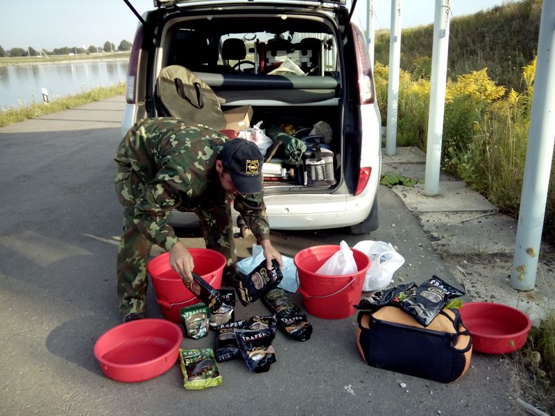 начали замешиваться. Все на основе Трапер. Не зря пару дней назад был произведен обмен пустых пачек на 12 кг свеженькой прикормки от Traper. Магазину "Исток" привет и респект за акцию и отличный прикорм