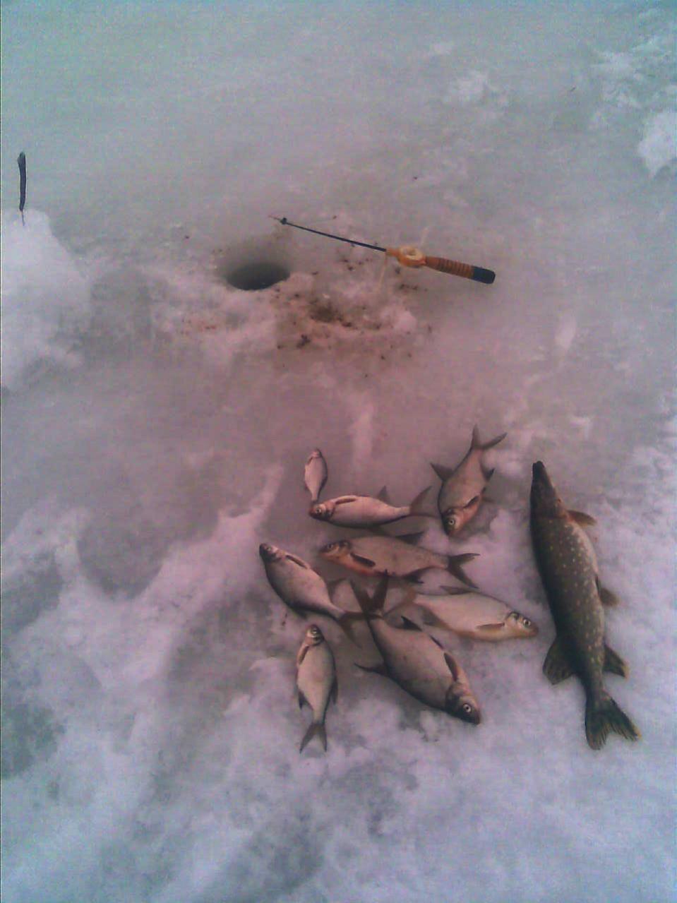 • Добрый вечер.После обеда заехал на пару часов .Лёд больше 15 см .был в конце за городом .несколько плоточек и окушков.если бы знал что такой лёд поехал бы с утра.Рыбаков не так много.Не спрашивал как клёв.