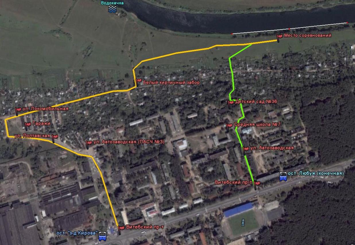 К месту соревнования прилегают следующие районы: р-н з-да им. Кирова, пр-т Димитрова, Витебский пр-т, ул. Фатина, м-н Юбилейный.